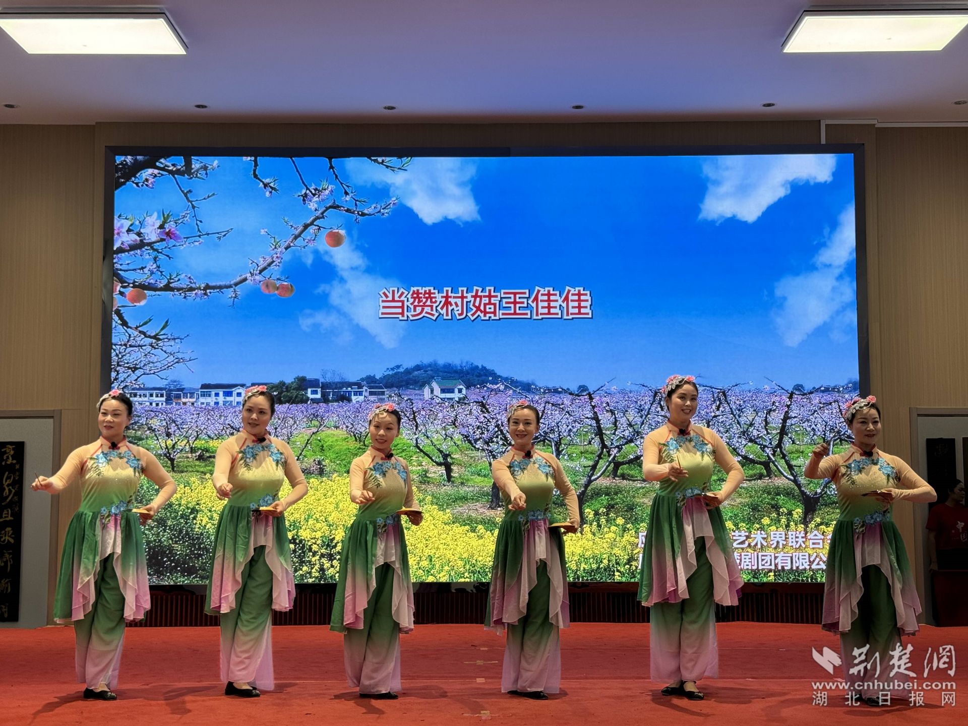 在湖北小曲《改彩禮》中,6名表演者手持碟兒翩然走出,通過湖北小曲特有的藝術(shù)表演形式,從彩禮婚嫁等群眾身邊事入手,倡導文明新風。