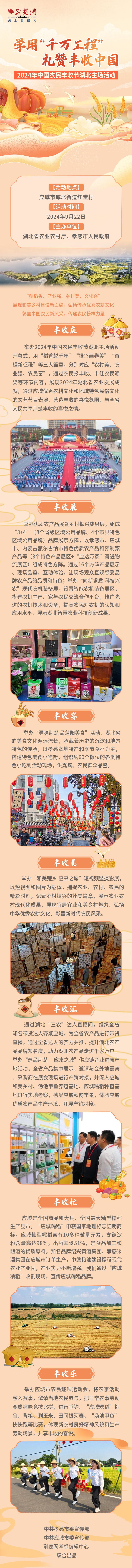 荊楚網(wǎng)(湖北日報網(wǎng))訊(記者黃菲 通訊員李林 馮璇 李夢婷)9月14日下午,從孝感市召開的新聞發(fā)布會上獲悉,2024年中國農(nóng)民豐收節(jié)湖北主場活動將于9月22日在應城市城北街道紅堂村舉行。