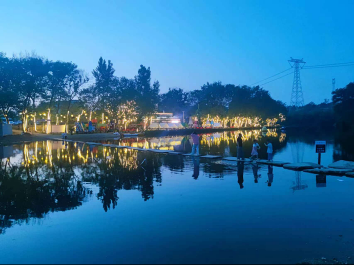 夜晚降臨,一頂頂帳篷成為一道道靚麗的風(fēng)景。來自武漢的胡女士一行6人慕名到此露營,她說:“這里柳樹成林,河水清澈,白天可以劃船、吃燒烤,晚上還有煙花節(jié),長(zhǎng)江煙花秀錯(cuò)過了,今晚打算對(duì)著煙花給家人許個(gè)愿。”