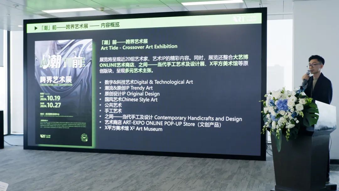 發(fā)布會(huì)上,大藝博ONLINE負(fù)責(zé)人陳靜勇介紹了大藝博ONLINE跨界互聯(lián)的案例與本屆大藝博跨界展示專區(qū)“「潮」前——跨界藝術(shù)展”的精彩亮點(diǎn)