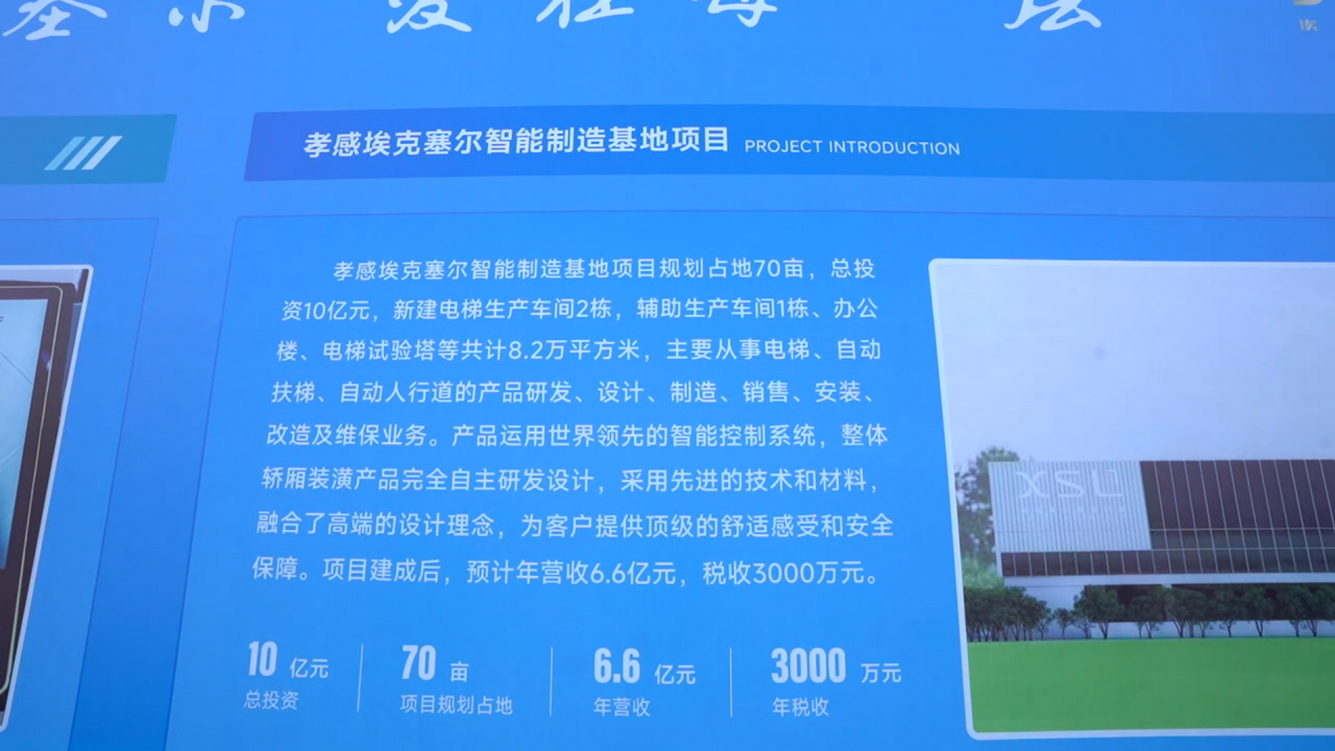 據(jù)悉,孝感埃克塞爾智能制造基地項目規(guī)劃占地70畝,總投資10億元,主要從事電梯、自動扶梯、自動人行道的產(chǎn)品研發(fā)、設(shè)計、制造、銷售、安裝、改造及維保業(yè)務(wù)。項目建成后,預(yù)計年營收6.6億元,稅收3000萬元。