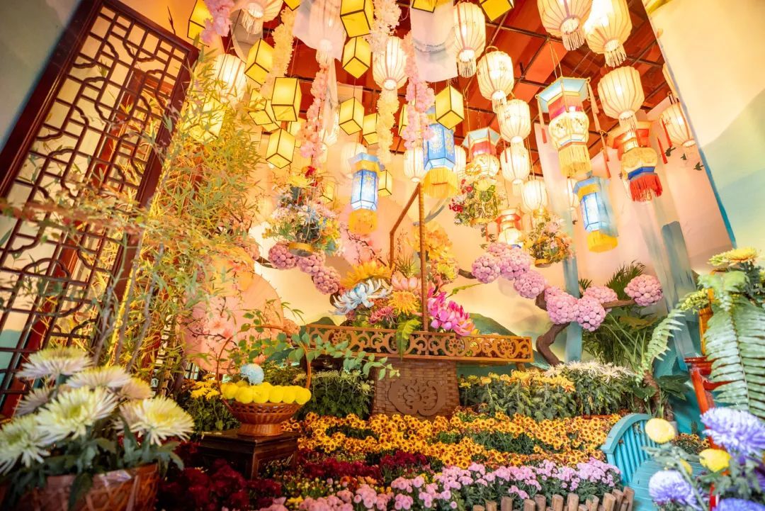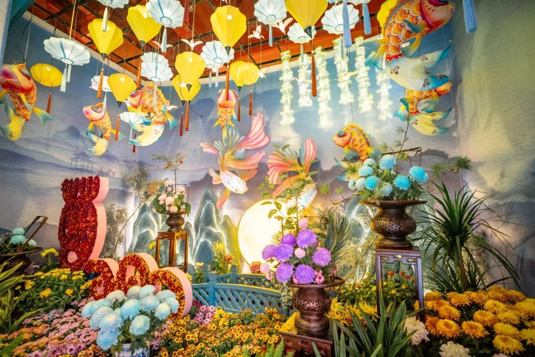 精致典雅的魚燈與芬芳璀璨的菊花,在吉祥如意的寓意中展現(xiàn)出別樣美感,氛圍十足,豐富的場景讓您觀展后更能感受到菊花盛宴的魅力。