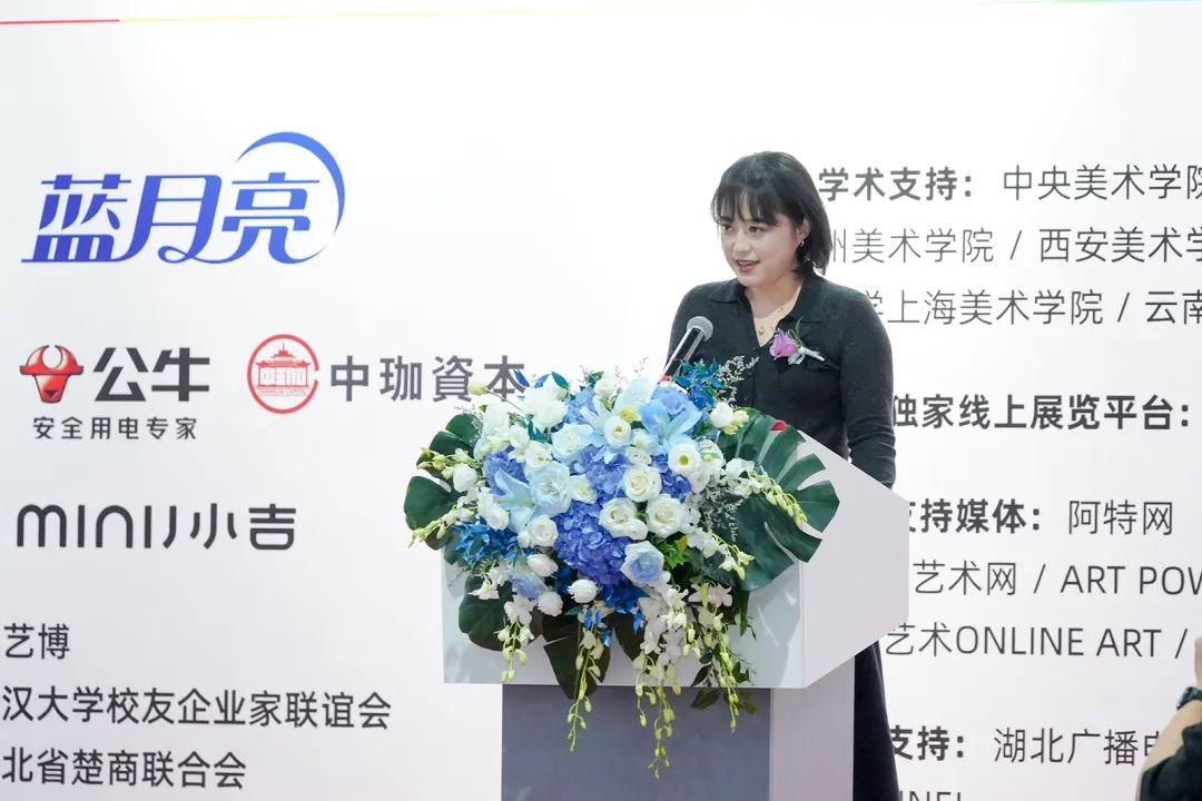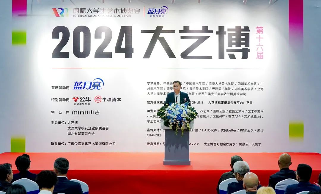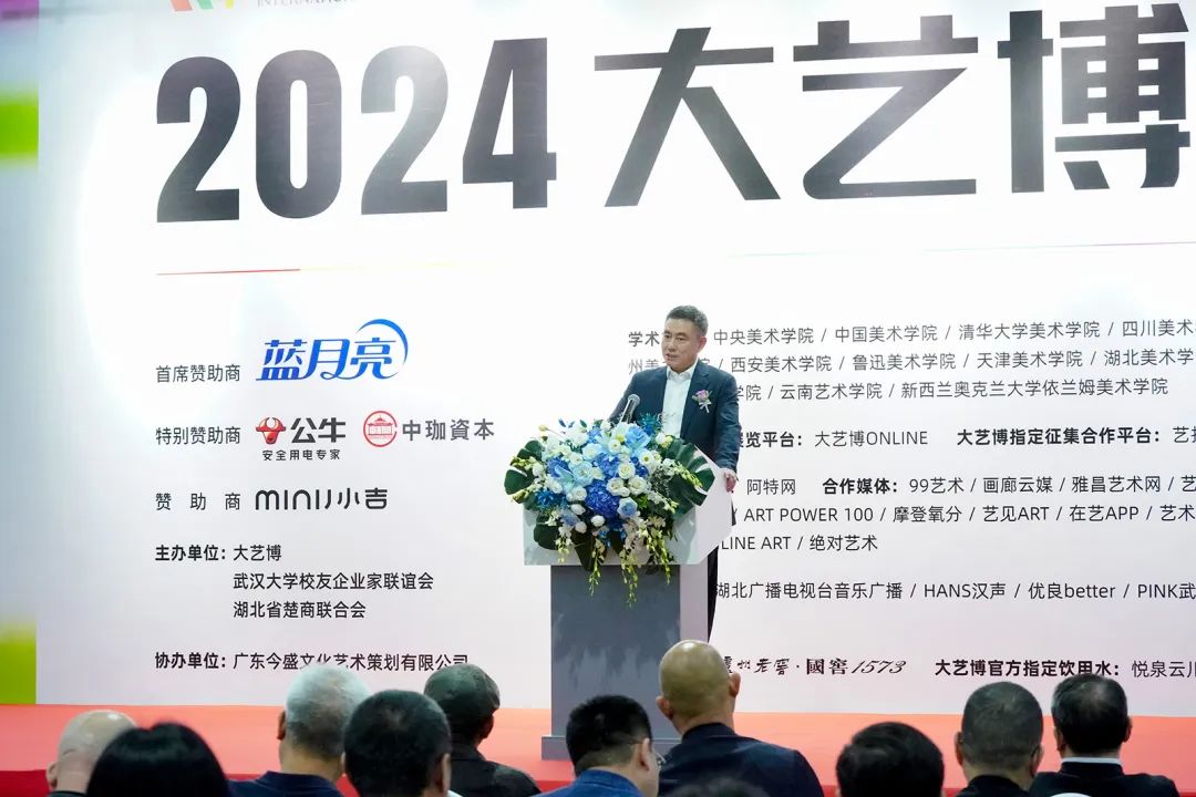 武漢大藝博文化藝術(shù)發(fā)展有限公司董事長(zhǎng)李亦非代表大藝博組委會(huì)、主辦方致辭