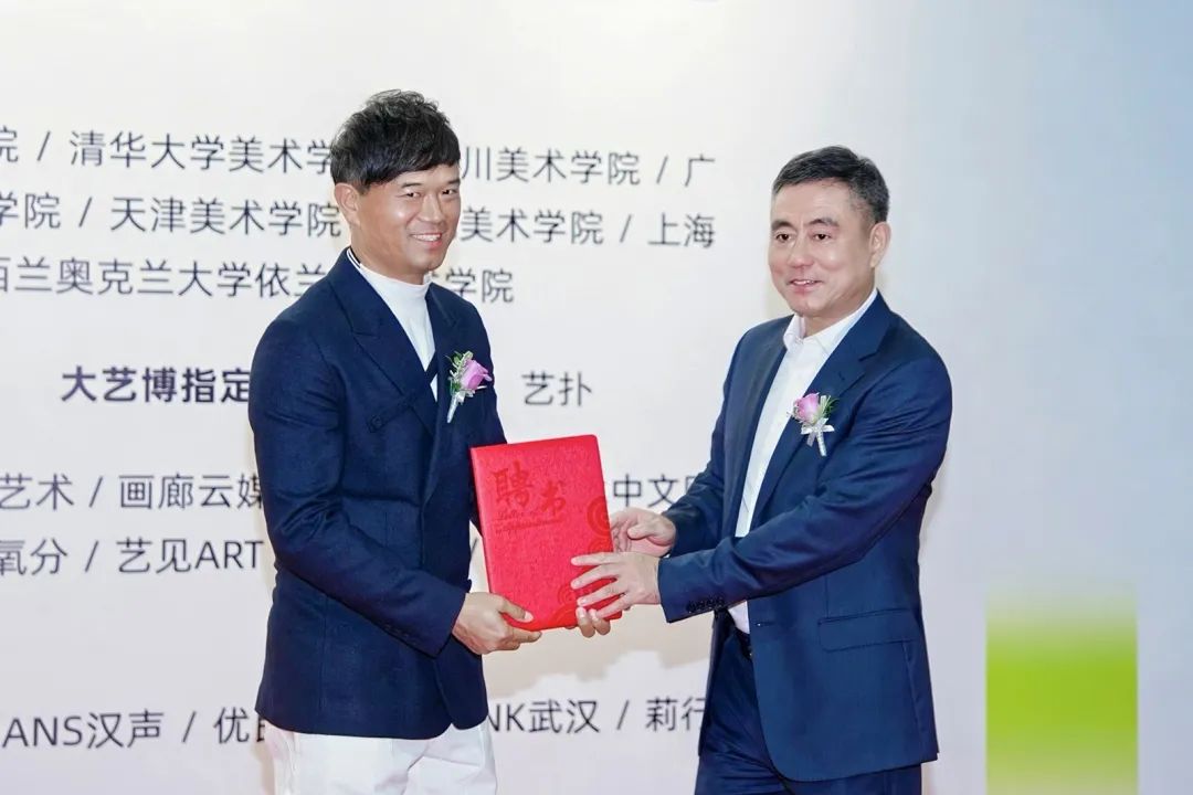 大藝博董事長(zhǎng)李亦非向鄧剛先生頒發(fā)聘書(shū)