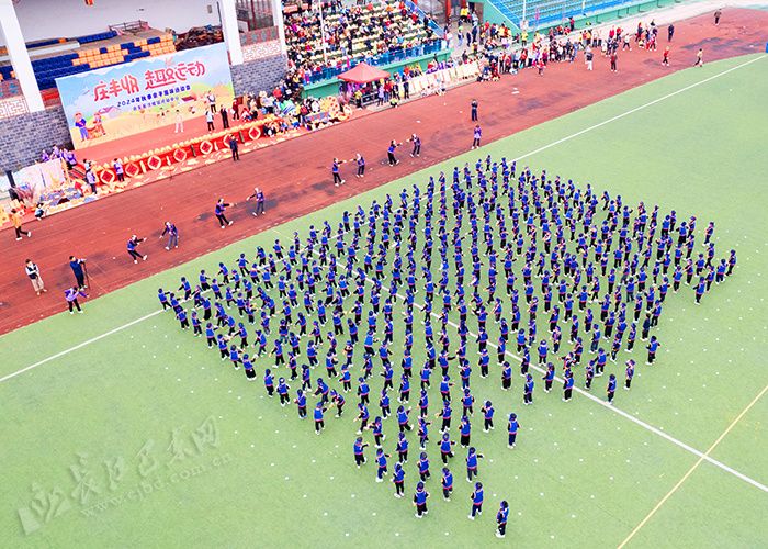 豐收秀場(chǎng),秀出夢(mèng)想。提著籃筐的“田間小精靈”方隊(duì),身著統(tǒng)一鮮艷的服裝,就像一片片生機(jī)勃勃的小麥田,他們手中的小籃子滿載著豐收的喜悅和期待;身著土家族傳統(tǒng)服飾的小小運(yùn)動(dòng)員們手拿鋤頭,神采飛揚(yáng);“玉米隊(duì)”的運(yùn)動(dòng)員們頭戴草帽,身背背簍,手拿玉米,展現(xiàn)了勤勞勇敢、團(tuán)結(jié)協(xié)作的精神風(fēng)貌……