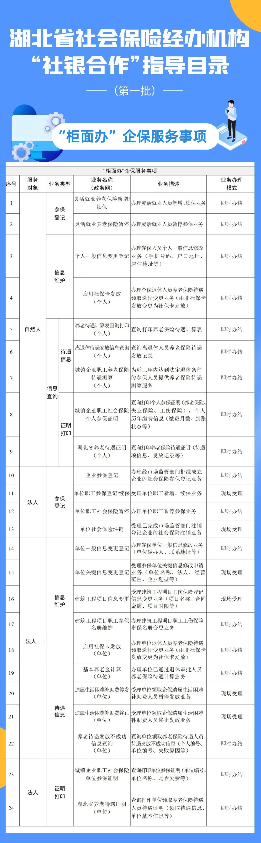 湖北省社會(huì)保險(xiǎn)經(jīng)辦機(jī)構(gòu)“社銀合作”指導(dǎo)目錄(第一批)發(fā)布啦!