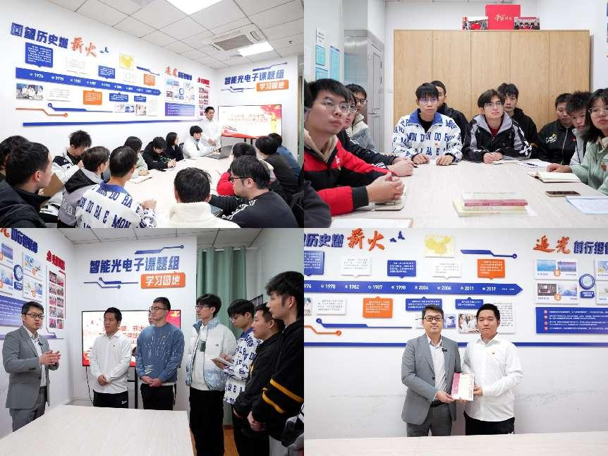 11月18日,支部書記胡臨風在鑒湖主樓608課題組學習園區(qū)主持理論學習活動,深入解讀黨的二十大和二十屆二中、三中全會關于教育科技人才工作的重要部署。活動邀請李政穎教授講授“回顧光纖發(fā)展史,追光鑄魂育新人”的專題知識,李教授描繪了光纖技術的發(fā)展歷程,并指引了黨支部的未來發(fā)展方向——黨建與科研同向同行,讓黨支部的堡壘作用和黨員的先鋒模范作用在科研一線充分發(fā)揮。李教授還向支部贈予《我是共產黨員——科學報國帶頭人》等書籍,鼓勵黨員們投身科研一線,矢志奮斗報國。