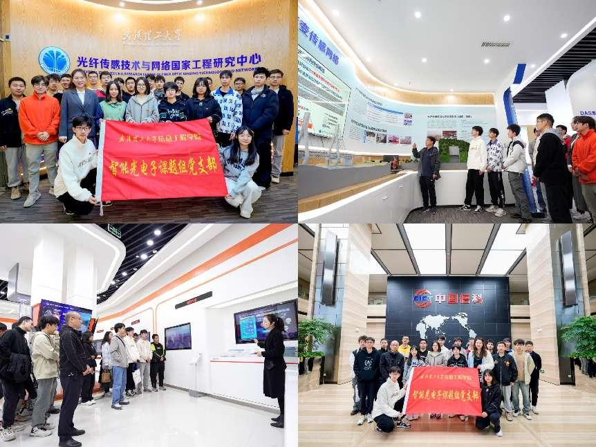 11月19日,支部成員前往武漢理工大學德生樓和烽火通信科技股份有限公司進行實踐訪學。在德生樓,支部成員充分學習到光纖傳感器作為新質傳感器的代表,在智慧交通、智慧醫(yī)療等領域發(fā)揮的重要作用;在烽火公司,支部成員了解并熟悉了中國光纖通信的發(fā)展歷史與發(fā)展現(xiàn)狀,認識到中國光領域的發(fā)展進步與中國科技創(chuàng)新能力的發(fā)展進步同頻共振。通過了解我國在光纖領域取得的成就,尋訪一代代追光人的追光之路,有力加深了支部黨員對理論學習知識的認知程度,堅定了支部成員科研報國的使命決心,充分落實黨支部“為黨育人、為國育才”使命任務。