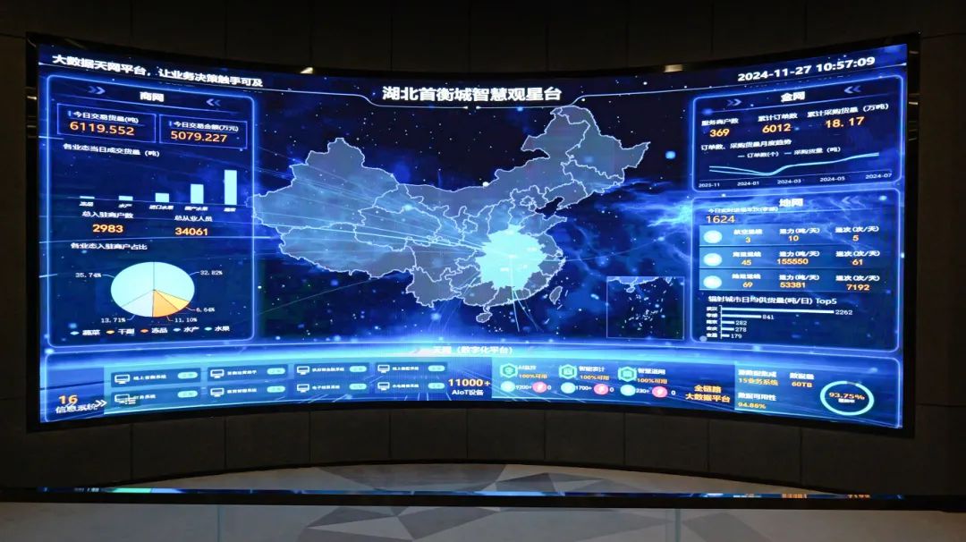 一年來,首衡城特色農(nóng)產(chǎn)品供應鏈平臺建設加速推進,“四網(wǎng)融合”成效初顯。建立首衡城數(shù)字化信息平臺,集成打造“數(shù)智中樞”,實現(xiàn)“一屏觀全域、一網(wǎng)管全園”;積極拓展水、陸、空多式聯(lián)運通道,成功與鄂州花湖機場、郵政、中鐵等建立合作,形成完善的城際城配支干線物流網(wǎng)絡矩陣。