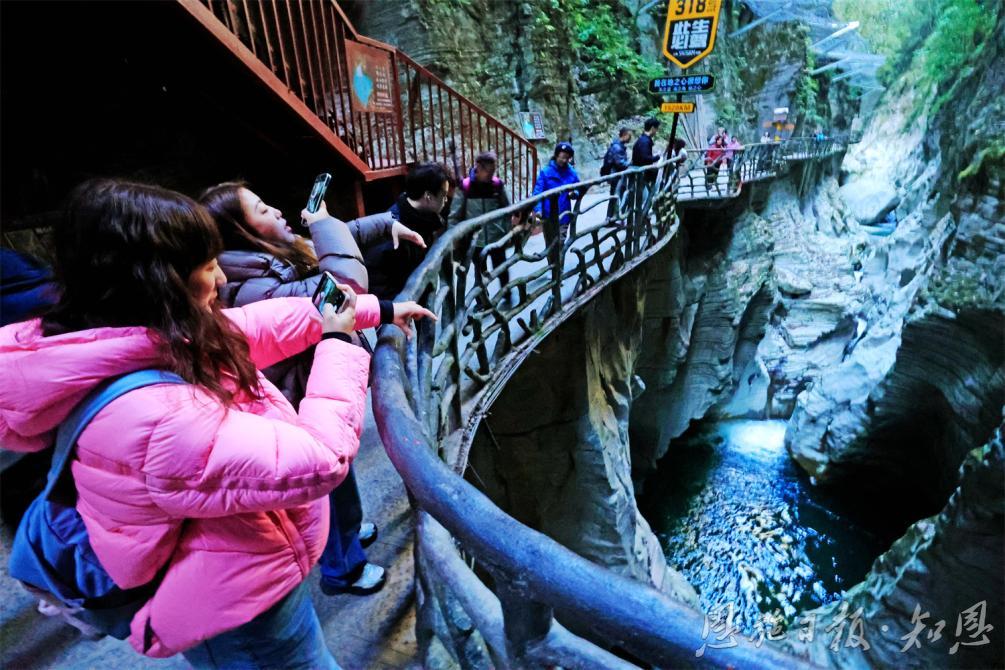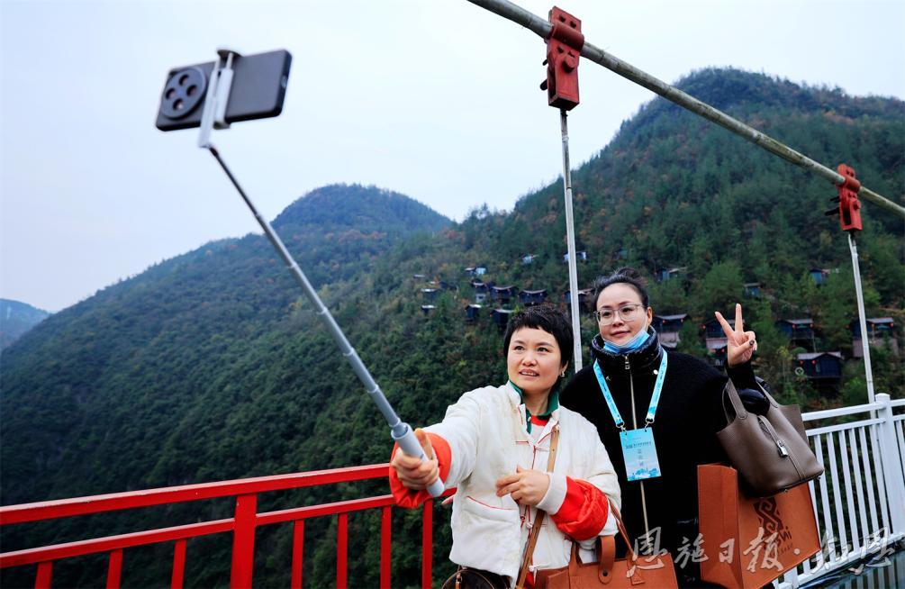 在恩施地心谷,參會人員親身體驗到了自然的鬼斧神工。他們漫步在古老的棧道上,俯瞰著深邃的峽谷,感受著大自然的壯麗與神秘。溪水潺潺,鳥鳴山更幽,每一處景色都讓人心曠神怡。一位來自北京的旅行商分享道:“站在棧道上,我仿佛能感受到地球的心跳,那種震撼和敬畏之情難以言表,有了親身的體驗我也能更好為游客介紹恩施地心谷景區(qū)了?!?/p>