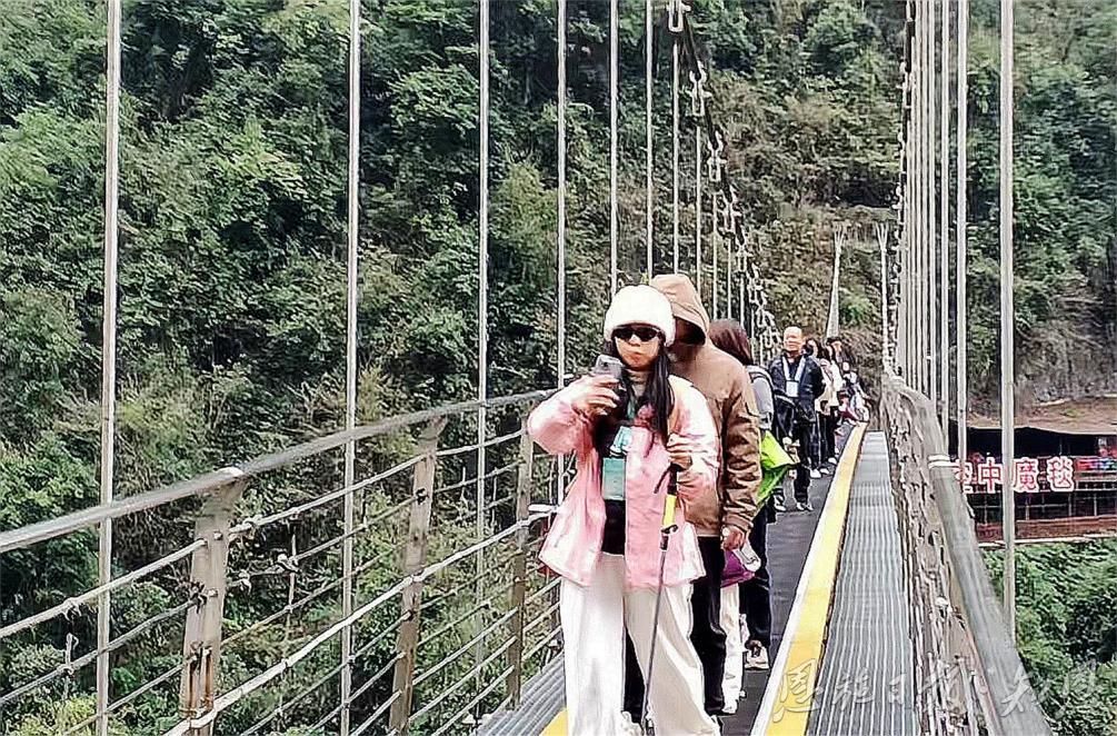 恩施地心谷,一個藏匿于地球深處的奇跡之地,以其幽深的峽谷、奇特的地貌、清澈的溪流和豐富的生態(tài)資源,被譽為自然界的瑰寶。當參會人員踏入這片秘境,他們被眼前的壯麗景色深深吸引,仿佛置身于一幅動人心魄的自然畫卷之中。一位來自廣東的旅行商表示:“這里的景色超出了我的想象,每一處都是自然的杰作,讓人流連忘返?!?/p>