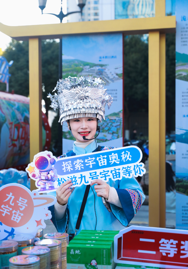 松滋文旅推介官景茜雅表示:“我們?yōu)榇蠹規(guī)砹诵都灼旱奶厣Y品,洈水景區(qū)、九號宇宙館的門票,誠邀武漢市民和游客們前往松滋,來一場放松身心、寄情山水的跨年之旅。”