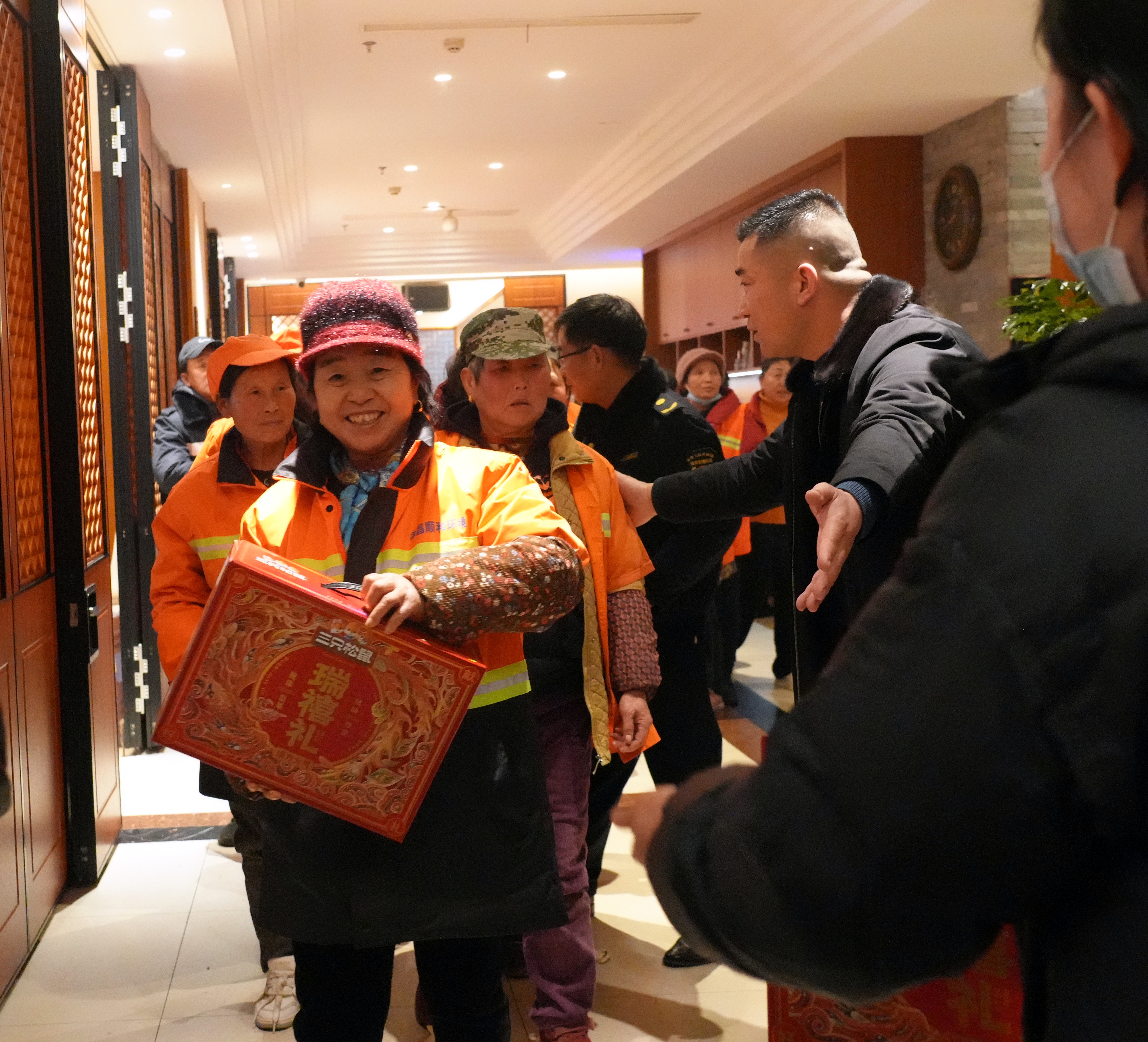 “城市的整潔有序,離不開環(huán)衛(wèi)工人的辛勤和付出。這頓年飯只是我們的一點小心意,希望通過這樣的行動,能帶動更多人關(guān)注他們,讓社會變得更加文明和諧,讓大家都能生活得更幸福?!毙⒉h愛心商家丁忠輝說。