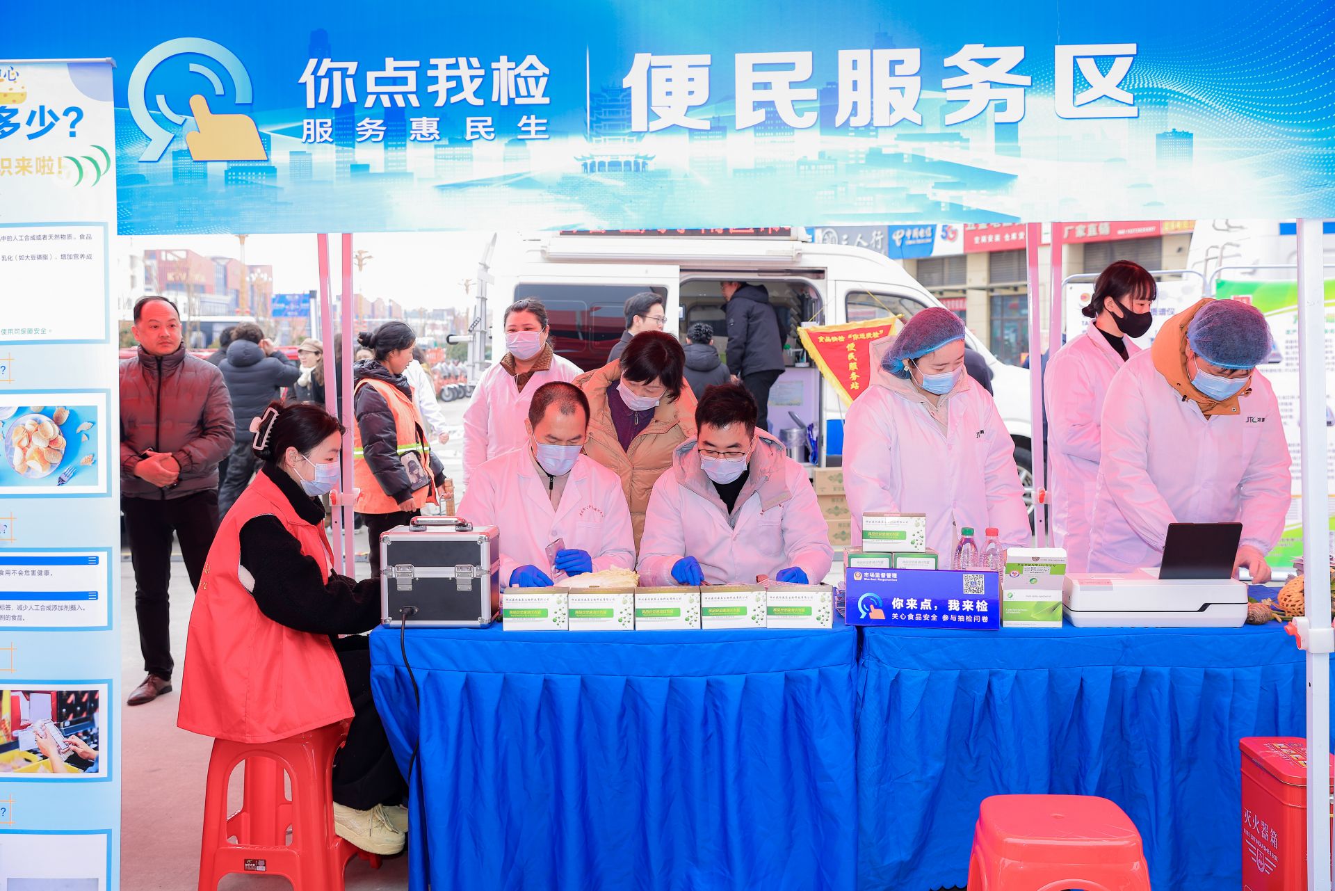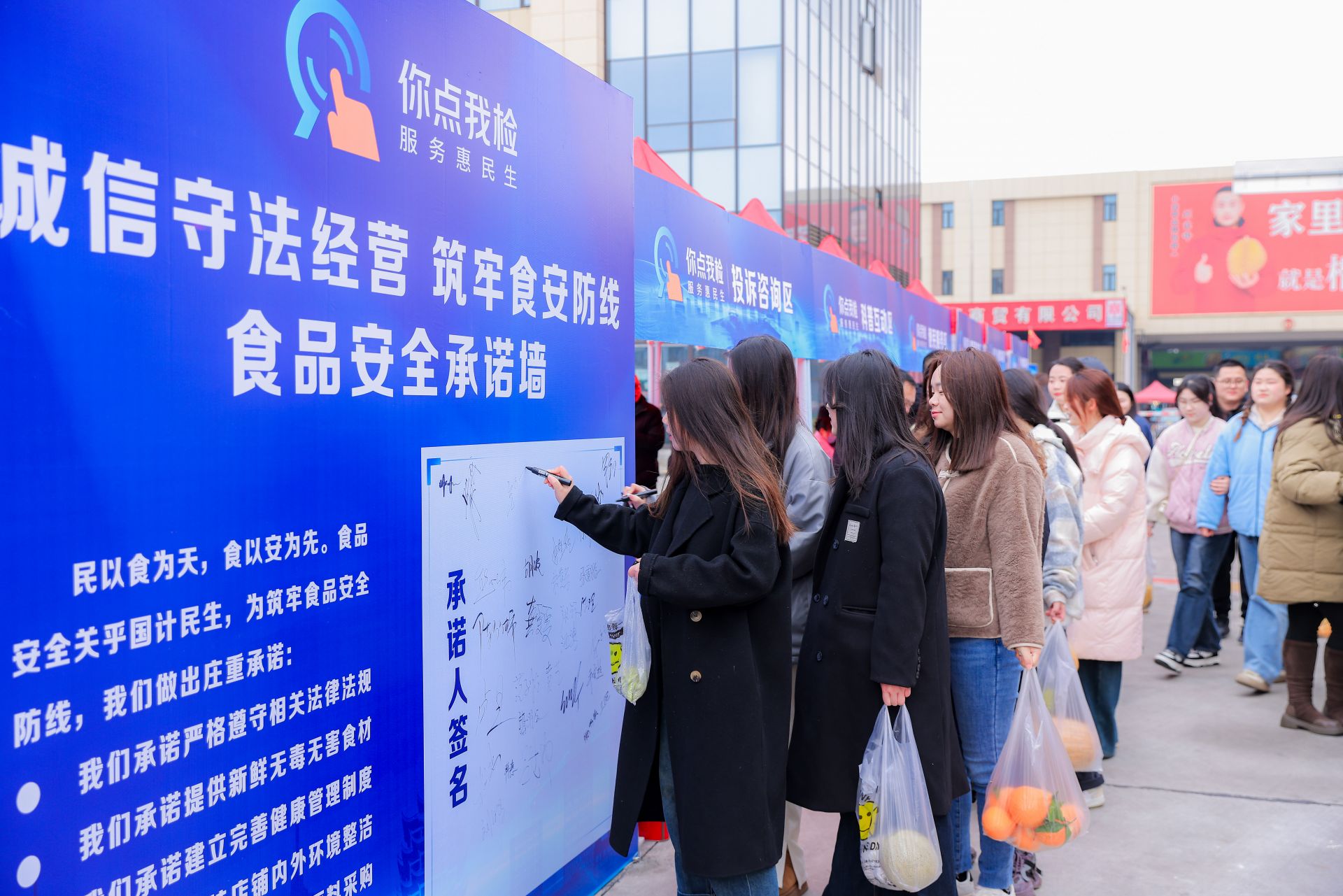 在隨后舉辦的現(xiàn)場活動中,工作人員設(shè)置了問卷填寫、便民服務(wù)、科普互動、投訴咨詢等多個(gè)區(qū)域與群眾積極互動。在問卷填寫區(qū),引導(dǎo)群眾通過使用“你點(diǎn)我檢 服務(wù)惠民生”民意征集系統(tǒng),點(diǎn)選想要抽檢的食品品類、場所和項(xiàng)目;在便民服務(wù)區(qū),接受群眾送檢食材,并開展現(xiàn)場檢驗(yàn);在科普互動區(qū),通過發(fā)放科普折頁和開展知識轉(zhuǎn)盤有獎(jiǎng)答題等形式,向群眾宣傳食品安全知識;在投訴咨詢區(qū),向群眾普及消費(fèi)維權(quán)知識,并現(xiàn)場受理投訴舉報(bào),維護(hù)消費(fèi)者合法權(quán)益。除此之外,現(xiàn)場還設(shè)置了“點(diǎn)選征集公示欄”,對前期群眾點(diǎn)選意見予以公示;設(shè)置了食品安全承諾墻,號召經(jīng)營者通過簽名形式承諾誠信守法,牢記食品安全責(zé)任。