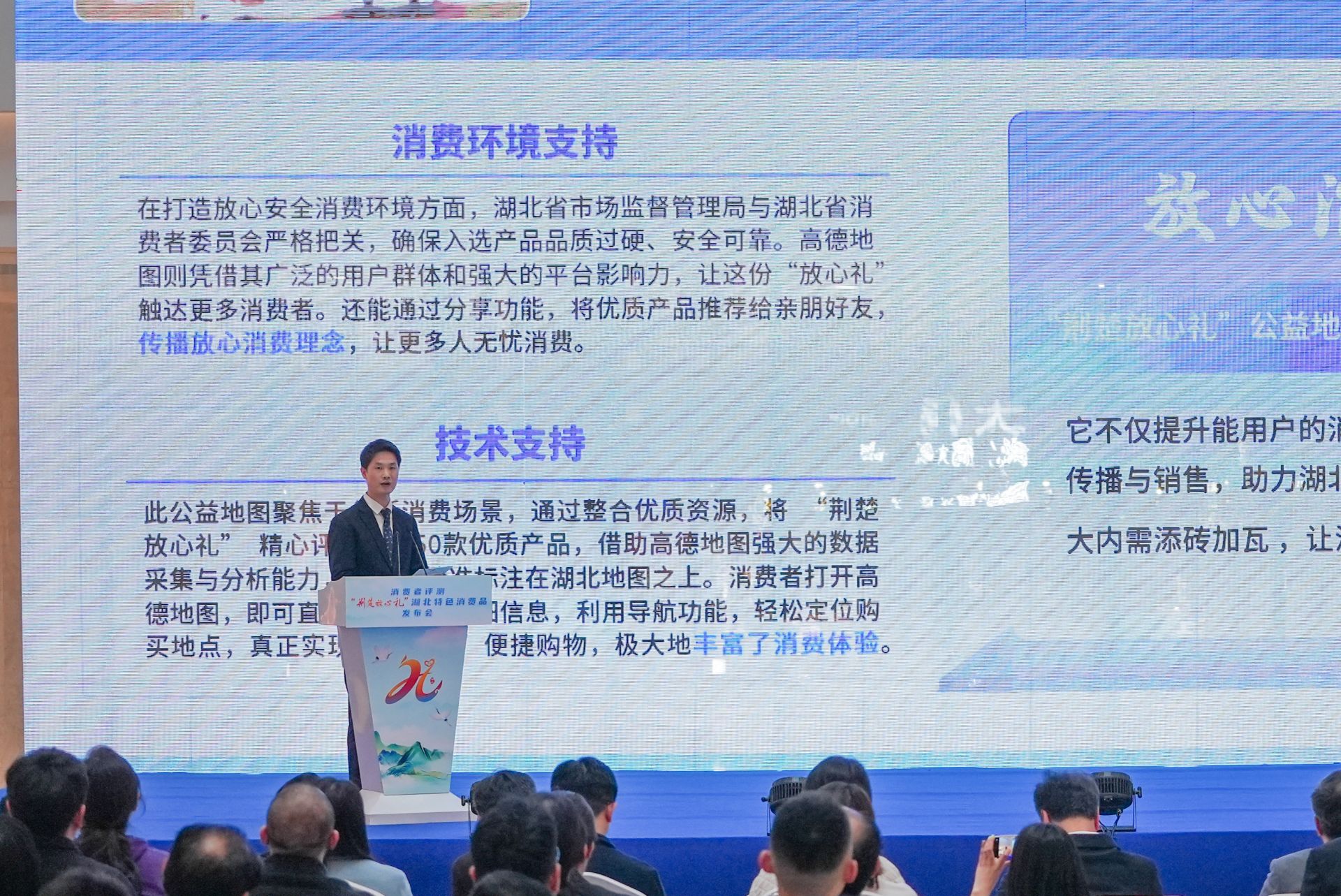 活動現(xiàn)場,高德地圖“荊楚放心禮”公益地圖和供銷荊選商城“荊楚放心禮”特色館專區(qū)等新消費場景同步上線,消費者可借助這兩個平臺,選購“荊楚放心禮”湖北特色消費品。