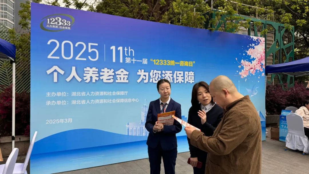 “個人養(yǎng)老金 為您添保障”。3月27日,湖北省人社廳與武漢市等市、州共同舉辦第十一屆“12333統(tǒng)一咨詢?nèi)栈顒印?,線上線下為群眾提供政策咨詢服務(wù)。
