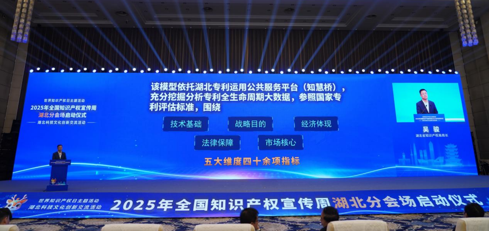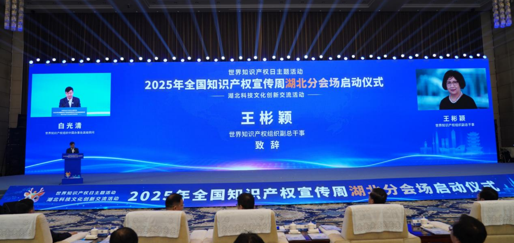 活動現(xiàn)場,世界知識產(chǎn)權(quán)組織副總干事王彬穎發(fā)來書面致辭,國家知識產(chǎn)權(quán)局專利局副局長李勝軍現(xiàn)場致辭,湖北省人大常委會副主任楊云彥出席并啟動湖北分會場,湖北省人民政府副秘書長郭宇、世界知識產(chǎn)權(quán)組織中國辦事處高級顧問白光清、湖北省知識產(chǎn)權(quán)局局長吳駿出席活動。來自專利審查協(xié)作湖北中心,省知識產(chǎn)權(quán)戰(zhàn)略實施工作聯(lián)席會議成員單位,國家知識產(chǎn)權(quán)強國建設(shè)試點示范城市、縣域政府及園區(qū)管委會,全省各市州知識產(chǎn)權(quán)局,省內(nèi)高校院所、企事業(yè)單位代表等500余人齊聚一堂。