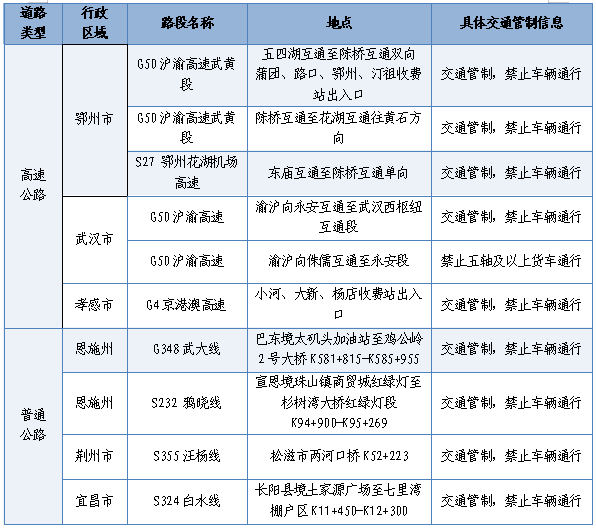 高速公路易緩行路段有:G50滬渝高速武穴至蘄春段、鄂州服務(wù)區(qū)至五四湖互通段、后湖至丫角段、北河至仙桃段、賀家坪至榔坪段;G42滬蓉高速東西湖至漢川段、應(yīng)城至天門北段;G70福銀高速孝感北至云夢(mèng)段、土關(guān)埡至武當(dāng)山段;S17硚孝高速永豐至西湖段等。