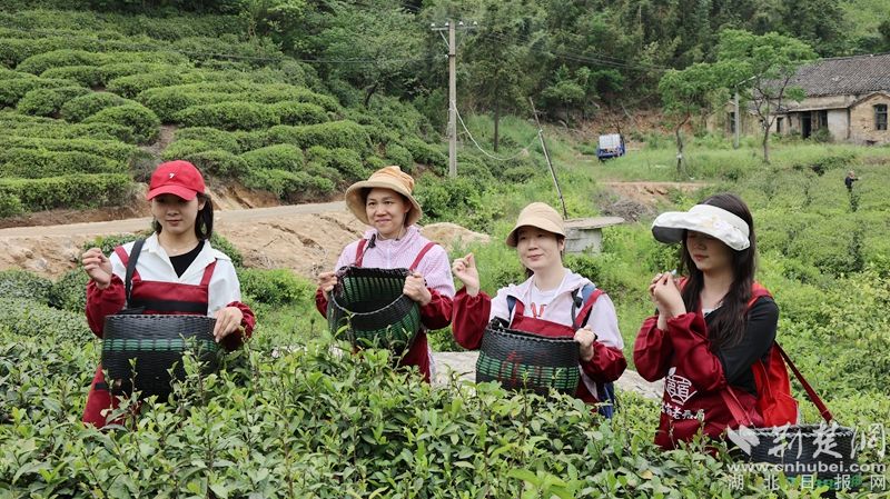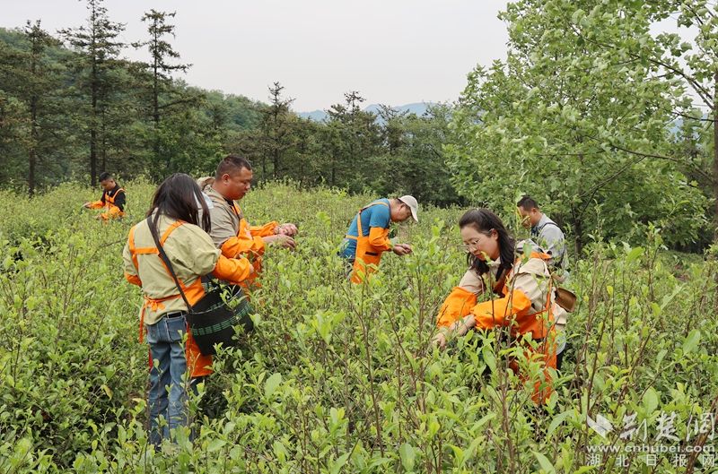 清晨的紅安老君山茶園,薄霧輕籠。30余名茶友背著竹簍,在專業(yè)茶農的帶領下深入荒野茶園,指尖輕捻,采擷最鮮嫩的芽葉。