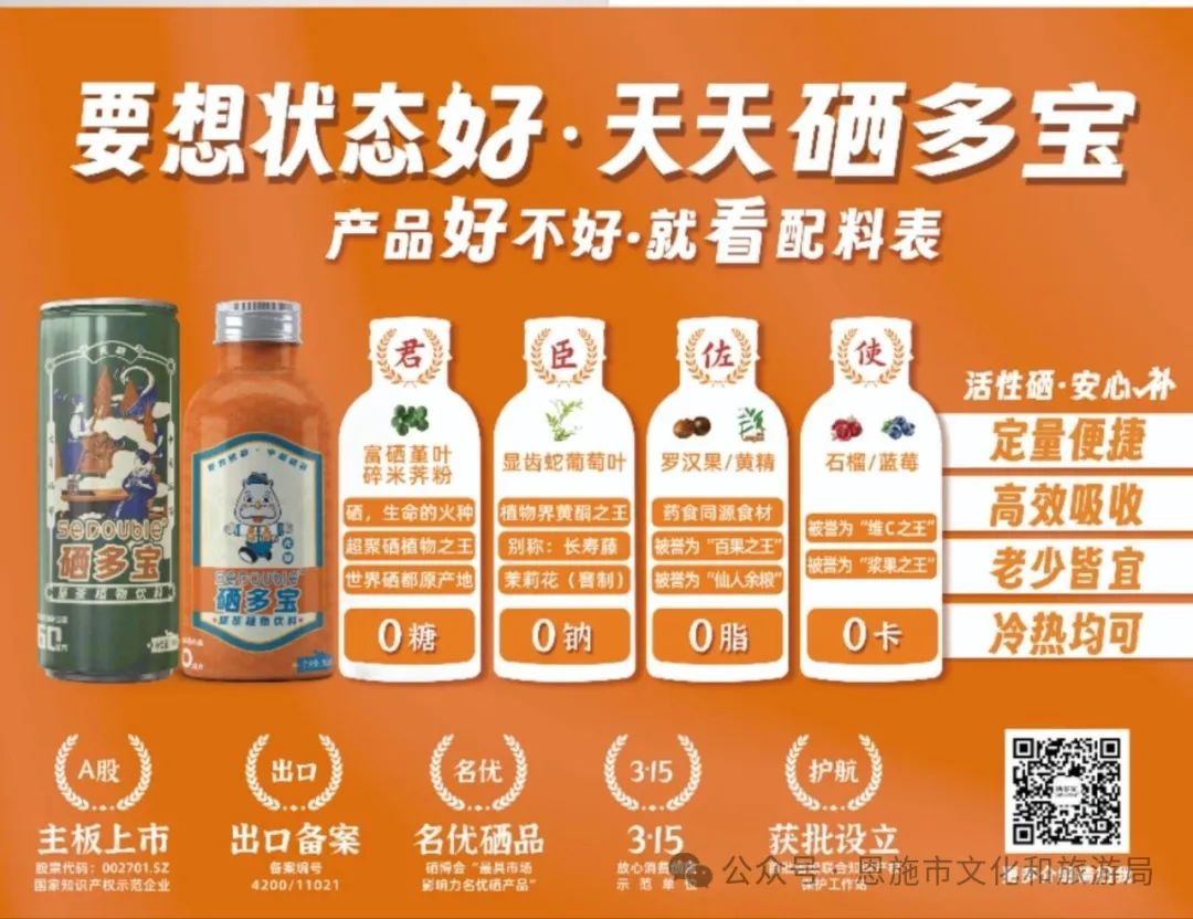 恩施一心文化發(fā)展有限公司的女兒會(huì)流沙金屬冰箱貼和硒多寶飲品集團(tuán)股份有限公司的硒多寶富硒無糖藤茶植物飲料獲得銀獎(jiǎng)。恩施市花禧門文化創(chuàng)意有限公司的土苗紋樣印花雙拼包和恩施市芭土康油茶湯經(jīng)營(yíng)部的土家油茶湯獲得銅獎(jiǎng)。這些商品的獲獎(jiǎng),展現(xiàn)了恩施市旅游商品的多樣性和豐富性。這不僅是對(duì)恩施市旅游商品開發(fā)成果的肯定,也為恩施市的旅游產(chǎn)業(yè)發(fā)展注入了新的動(dòng)力。