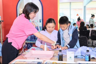 5月24日上午,省婦女兒童活動中心一樓親子空間迎來了首批50組親子家庭,參加“童樂童年”親子手工坊活動?;顒蝇F(xiàn)場設置了植物印染、非遺扎染、黏土創(chuàng)作、傳統(tǒng)書畫四個特色體驗區(qū),孩子們在老師的指導下,充分發(fā)揮想象力,創(chuàng)作出各具特色的手工作品?;顒渝憻捔撕⒆觽兊膭邮帜芰Γ沧屗麄兩羁谈惺艿街腥A優(yōu)秀傳統(tǒng)文化的魅力。
