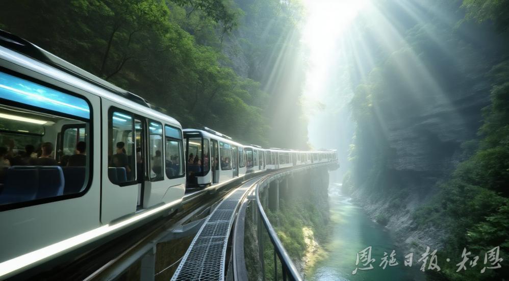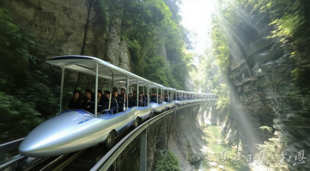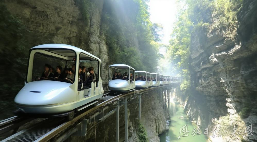 在過(guò)去,常規(guī)的步行棧道與纜車(chē)游覽方式,常使游客游覽路線受限,峽谷的諸多絕美之處被隱匿。地心谷敏銳捕捉到懸崖軌道車(chē)這一創(chuàng)新亮點(diǎn),著力打造恩施峽谷旅游首條崖壁軌道交通項(xiàng)目,讓13分鐘航程成為穿越地心世界的文明切片。