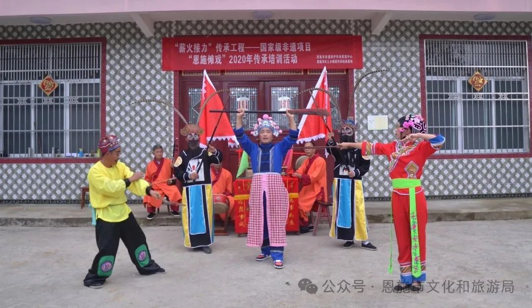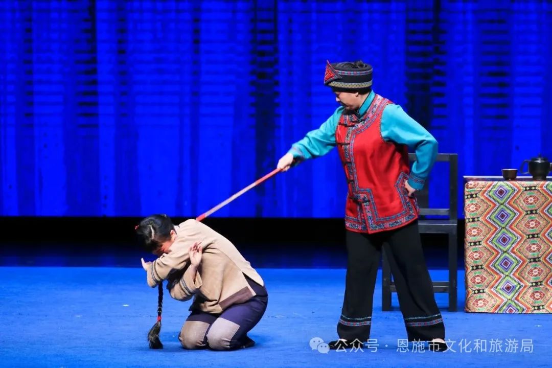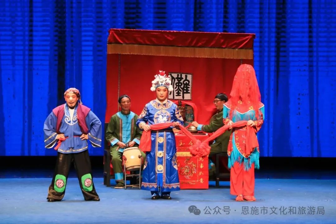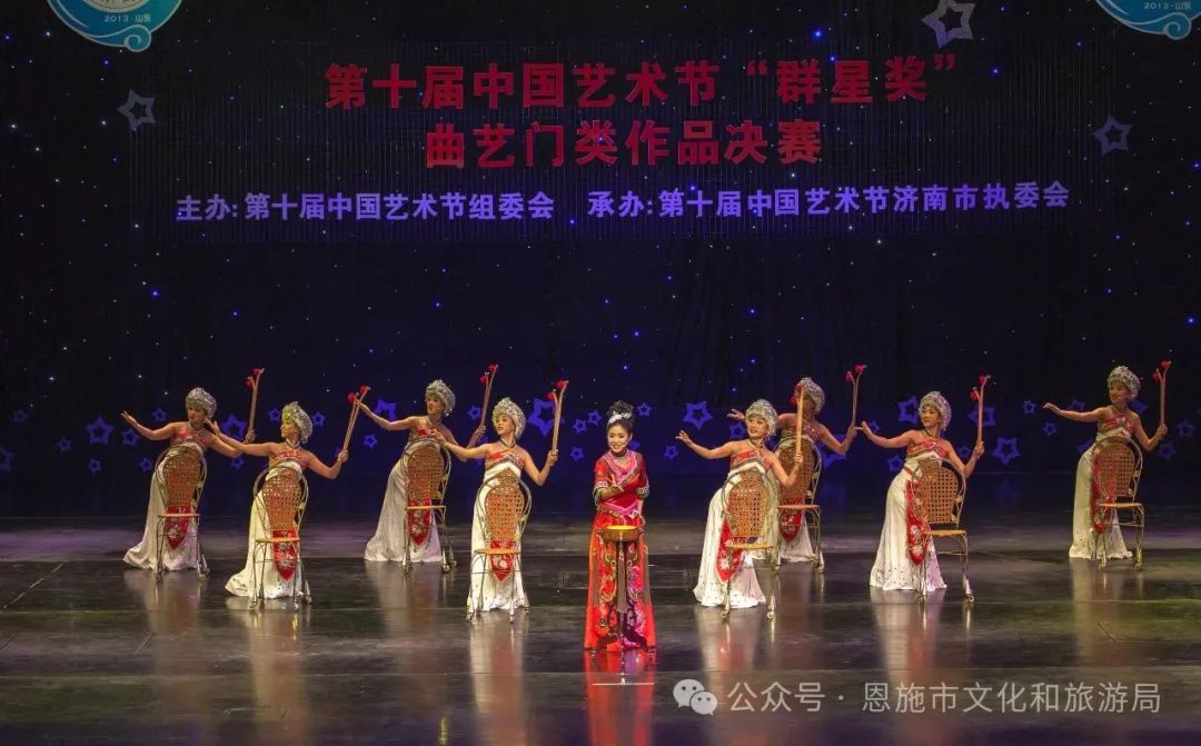 藝術創(chuàng)作精品迭出,以非遺項目元素為題材創(chuàng)作多個藝術精品節(jié)目,恩施揚琴《鎮(zhèn)船石》榮獲第十屆中國藝術節(jié)“群星獎”、第十二屆湖北省“百花書會”會演創(chuàng)作金獎、表演雙金獎;恩施揚琴《回報》入圍中國曲藝最高獎牡丹獎;燈戲《雪山放羊》、儺戲《鮑秀英招親》亮相全國戲曲百戲(昆山)盛典。