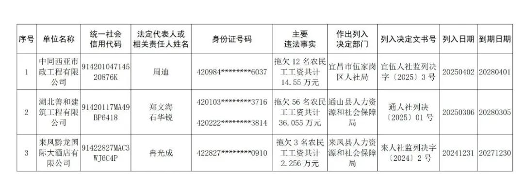 為進一步加大對重大勞動保障違法行為的懲戒力度,強化社會輿論監(jiān)督,維護勞動者合法權(quán)益,根據(jù)《重大勞動保障違法行為社會公布辦法》(人力資源和社會保障部令第29號)和《拖欠農(nóng)民工工資失信聯(lián)合懲戒對象名單管理暫行辦法》(人力資源和社會保障部令第45號),現(xiàn)向社會公布2025年第二批重大勞動保障違法行為案件及拖欠農(nóng)民工工資失信聯(lián)合懲戒對象名單。