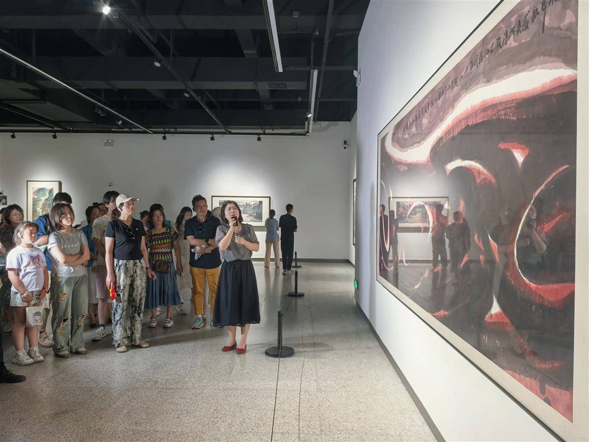 展覽分為“求索”“擊水”“不息”三個(gè)部分。既有溯源長(zhǎng)江、追問楚風(fēng)的思索,也有和諧共生、聚焦長(zhǎng)江生態(tài)文明的表達(dá);既有承載長(zhǎng)江兒女奮斗精神的“武漢長(zhǎng)江大橋”“葛洲壩”“三峽”“武鋼”等重大工業(yè)建設(shè)和水利工程的描繪,也有新時(shí)代長(zhǎng)江兒女對(duì)美好生活向往的表述,旨在加強(qiáng)挖掘館藏作品中蘊(yùn)含的長(zhǎng)江文化精神,對(duì)長(zhǎng)江文明進(jìn)行溯源研究和傳播展示,傳承并弘揚(yáng)大別山精神、抗洪精神和抗疫精神?!?/p>