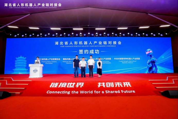 對(duì)接會(huì)上,湖北人形機(jī)器人產(chǎn)業(yè)聯(lián)盟與浙江省機(jī)器人產(chǎn)業(yè)發(fā)展協(xié)會(huì)、國(guó)地共建人形機(jī)器人創(chuàng)新中心、中關(guān)村融智特種機(jī)器人產(chǎn)業(yè)聯(lián)盟簽署戰(zhàn)略合作框架協(xié)議。根據(jù)協(xié)議,四方將圍繞機(jī)器人產(chǎn)業(yè)生態(tài)構(gòu)建,在技術(shù)研發(fā)、市場(chǎng)拓展、人才交流等方面開(kāi)展深度合作,推動(dòng)資源共享、優(yōu)勢(shì)互補(bǔ),共同提升人形機(jī)器人產(chǎn)業(yè)競(jìng)爭(zhēng)力。