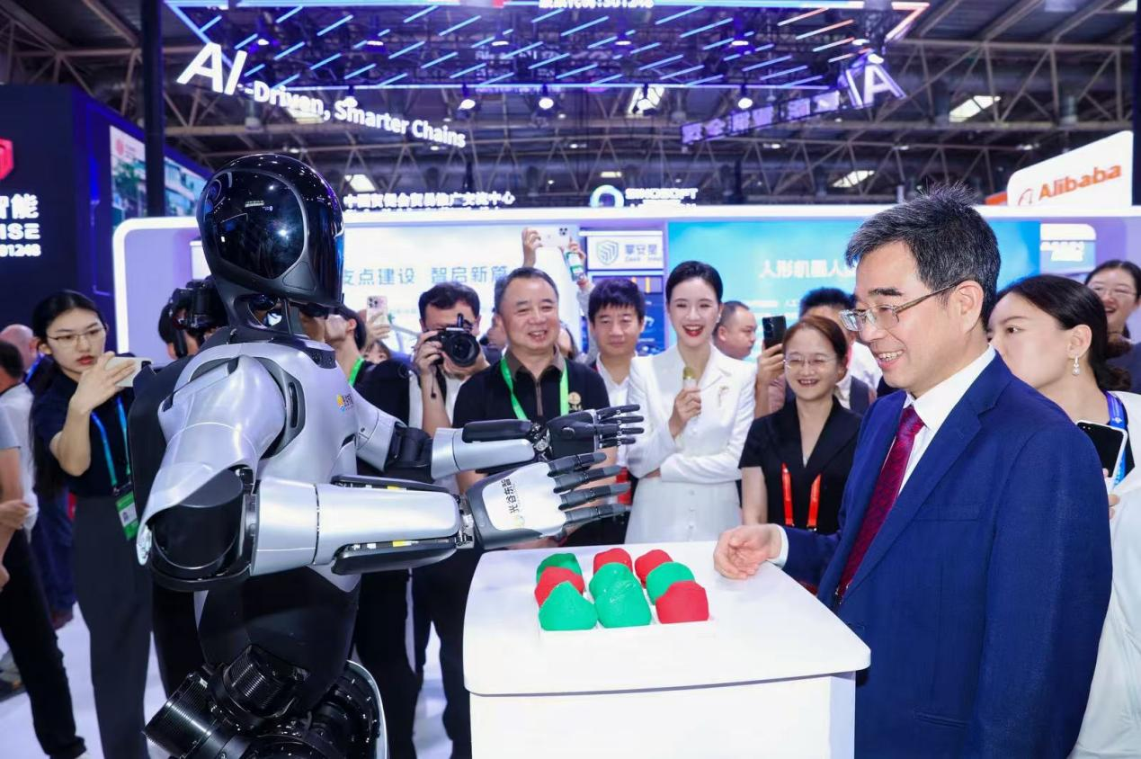 荊楚網(wǎng)(湖北日報網(wǎng))訊(通訊員 盧寶國)7月16日上午,第三屆中國國際供應鏈促進博覽會(簡稱“鏈博會”)在京開幕。湖北以“支點建設,智啟新篇”為主題,在本屆鏈博會期間搭建湖北人形機器人產(chǎn)業(yè)鏈專題展區(qū)。組織20余家湖北人形機器人產(chǎn)業(yè)鏈新銳企業(yè),攜帶89件產(chǎn)品,進行展覽展示、人機互動、場景體驗,現(xiàn)場刮起強勁“湖北風”。