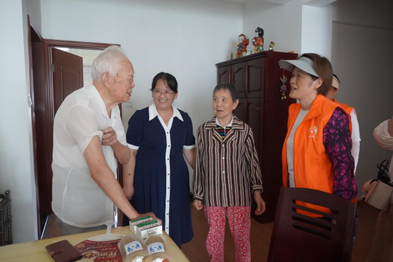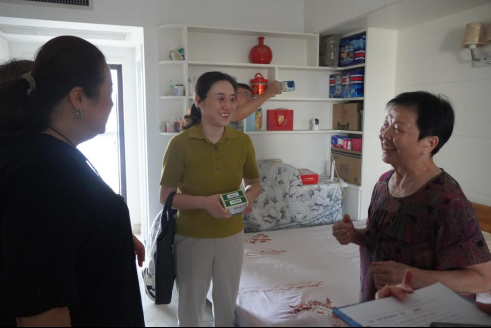 在華電社區(qū)90歲的獨居老人劉爺爺家中,慰問團隊得知老人前段時間做的體檢,現(xiàn)場由慰問團隊中的家庭醫(yī)生進行體檢報告的解讀?!斑@么熱的天氣,你們還專程上門送藥送關(guān)懷,真是比親人還貼心!”劉爺爺握著工作人員的手連聲道謝?;顒悠陂g,康益壽團隊還對部分困難老人的生活需求進行詳細記錄,后續(xù)將聯(lián)動社區(qū)開展針對性幫扶。