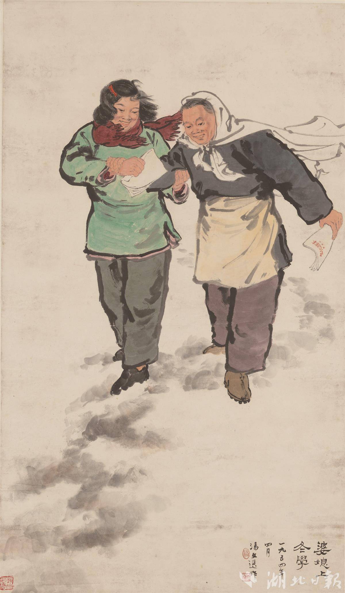 湯文選 《婆媳上冬學》 紙本設色