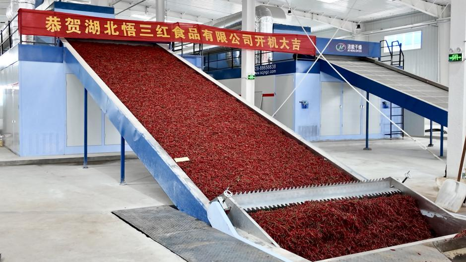 這座今年正式投產(chǎn)、扎根田間地頭的辣椒烘干廠,正以其獨(dú)特的“紅火”勢頭,成為推動當(dāng)?shù)剜l(xiāng)村產(chǎn)業(yè)振興、帶動農(nóng)民增收的新引擎。烘干廠配備了2條中國第六代智能節(jié)能辣椒烘干生產(chǎn)線,滿負(fù)荷運(yùn)轉(zhuǎn)可日烘鮮椒20萬斤,年加工量超過3萬噸。通過精準(zhǔn)的溫濕度控制技術(shù),工廠能在短時間內(nèi)將鮮椒高效烘干至標(biāo)準(zhǔn)含水量,極大提升了本地辣椒的附加值,有效解決了鮮椒集中上市時面臨的銷售難、儲存難問題,讓豐店鎮(zhèn)及周邊地區(qū)的辣椒種植戶吃下了“定心丸”。它不僅延伸了辣椒產(chǎn)業(yè)鏈條,更將季節(jié)性農(nóng)產(chǎn)品轉(zhuǎn)化為具有更高價值和更長貨架期的商品。