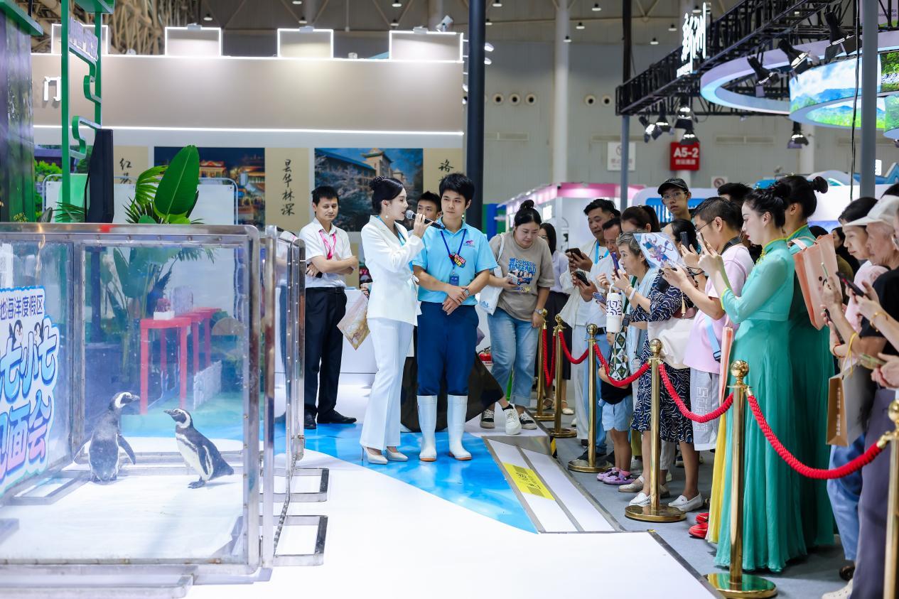 2025年9月12日至14日,2025中國文化旅游產(chǎn)業(yè)博覽會在武漢國際博覽中心盛大舉行。海合安武漢極地海洋度假區(qū)作為特邀參展嘉賓,憑借“極地萌寵 + 特色展演”的創(chuàng)新展示形式驚艷全場,尤其是麥?zhǔn)檄h(huán)企鵝的首次展會巡游,迅速成為展會焦點。