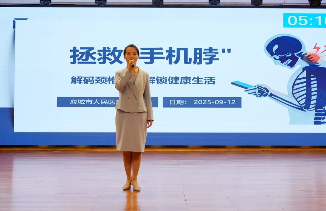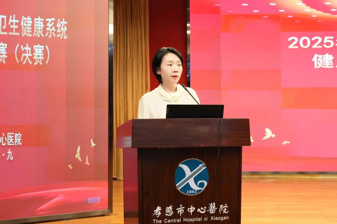 孝感市中心醫(yī)院副院長(zhǎng)張海燕在健康科普大賽上進(jìn)行致辭,經(jīng)過前期預(yù)賽,18位來(lái)自各醫(yī)聯(lián)體成員單位的參賽代表同臺(tái)競(jìng)技,圍繞慢性病管理、急救常識(shí)、婦幼健康、老年健康等群眾關(guān)切的健康話題開展了科普宣講。