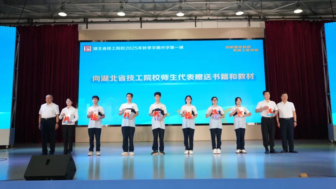 活動(dòng)儀式上,中國(guó)人力資源和社會(huì)保障出版集團(tuán)向湖北省技工院校贈(zèng)送了“開(kāi)學(xué)第一課”書(shū)籍和“技能照亮前程”培訓(xùn)行動(dòng)規(guī)劃教材。