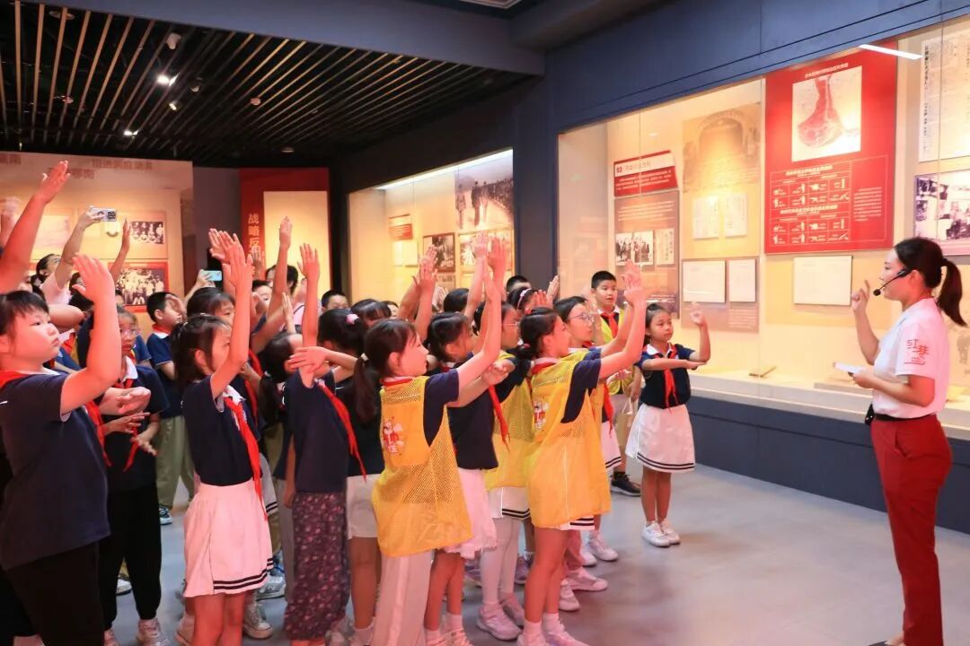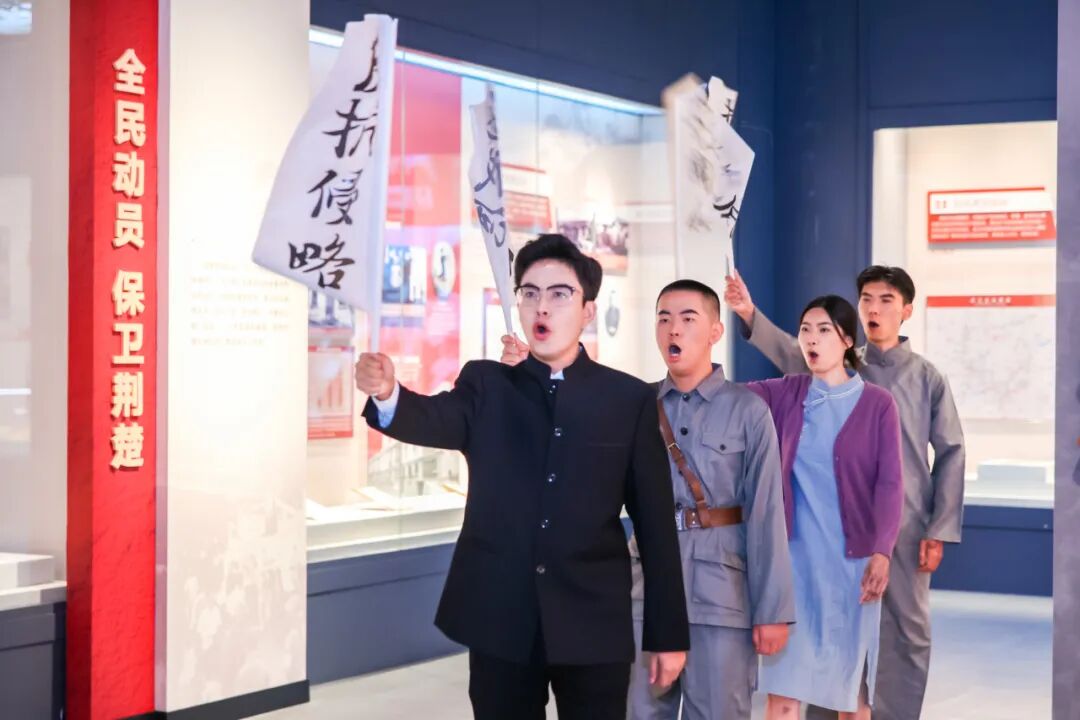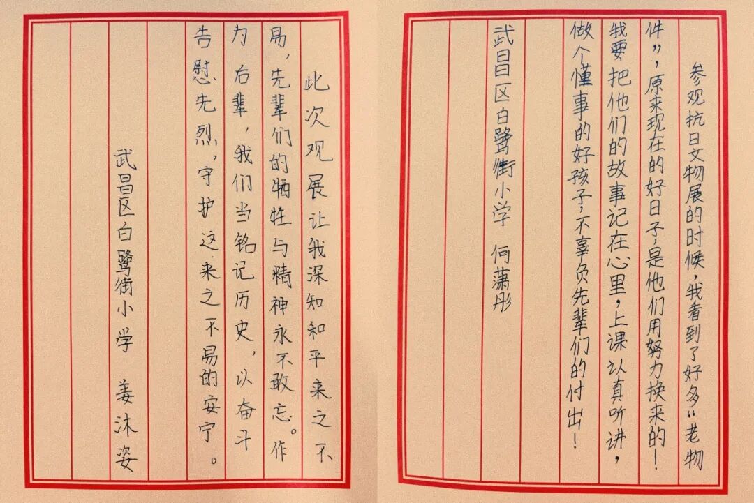 在“保衛(wèi)大武漢”場(chǎng)景前,同學(xué)們用童言童語宣講抗戰(zhàn)故事,齊聲高唱抗戰(zhàn)歌曲;在“跨越時(shí)空的對(duì)話”環(huán)節(jié)中,大中小學(xué)生深情誦讀紅色家書,寫信給保家衛(wèi)國的戰(zhàn)士們,表達(dá)內(nèi)心的無限崇敬;在打卡紅色專題展覽時(shí),大家參與演繹情景劇,讓歷史可觸可感。
