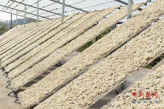 而這樣的環(huán)境催生了“豆絲”這一鄂州傳統(tǒng)美食。除了大米外,綠豆、黃豆、葛根等“豆絲”原材料生長在山溝、溪邊、林中?!懊磕耆攵?,幾乎家家起大灶開始制作豆絲,風(fēng)干后可以留存整個(gè)冬天?!敝軛罱榻B。