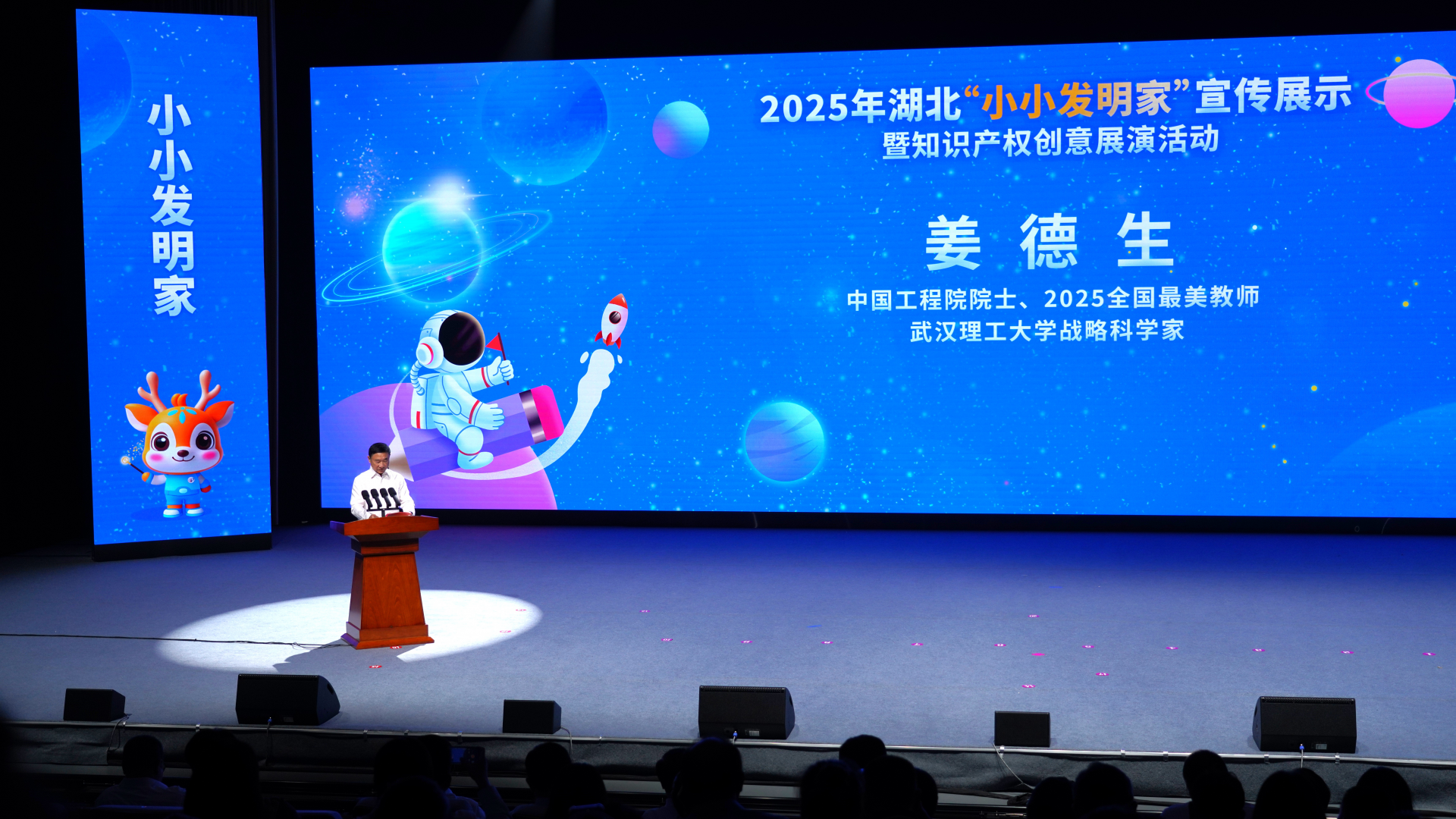 現(xiàn)場(chǎng)揭曉了20名(組)小小發(fā)明家“創(chuàng)意之星”和30名(組)“未來(lái)之星”名單。姜德生院士與吳駿局長(zhǎng)為中學(xué)組“創(chuàng)意之星”頒發(fā)專屬勛章,中國(guó)發(fā)明協(xié)會(huì)黨委書(shū)記、常務(wù)副理事長(zhǎng)、秘書(shū)長(zhǎng)余華榮為小學(xué)組“創(chuàng)意之星”頒發(fā)勛章。此外,活動(dòng)組委會(huì)還宣布成立“導(dǎo)師幫幫團(tuán)”,來(lái)自高校、湖北重點(diǎn)實(shí)驗(yàn)室、省知識(shí)產(chǎn)權(quán)保護(hù)中心及5A級(jí)知識(shí)產(chǎn)權(quán)代理機(jī)構(gòu)的20名導(dǎo)師將與“創(chuàng)意之星”結(jié)對(duì),提供技術(shù)優(yōu)化、專利申報(bào)指導(dǎo)等長(zhǎng)期支持,推動(dòng)青少年創(chuàng)意走向?qū)嵺`。