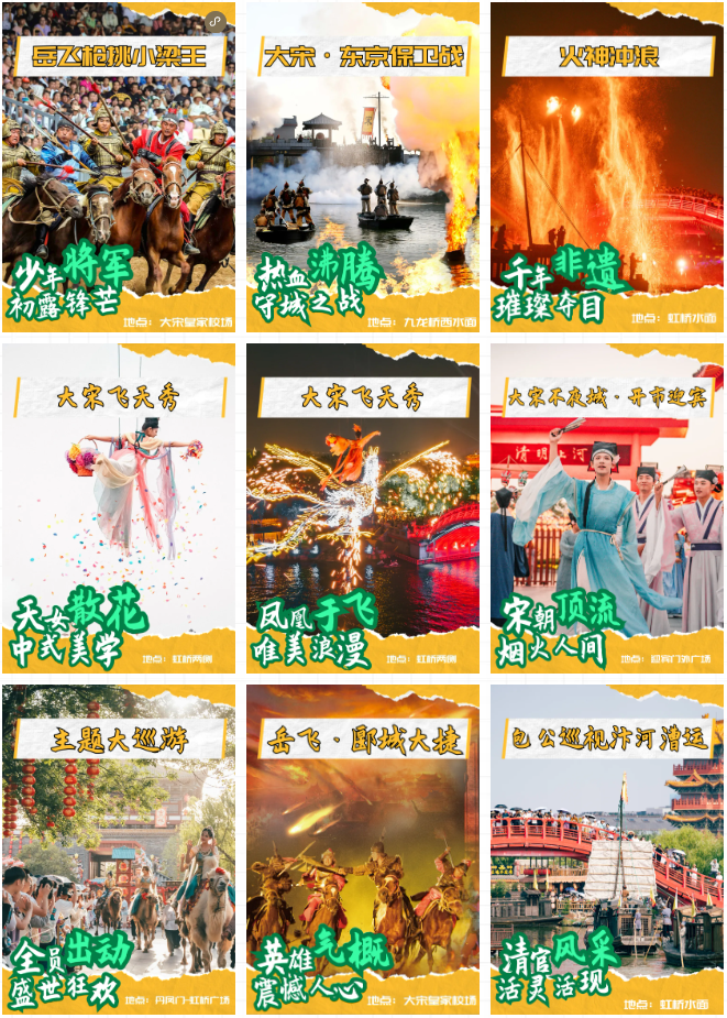 清明上河園——大型宋文化主題公園是國家文化產(chǎn)業(yè)示范基地、國家AAAAA級旅游景區(qū),以《清明上河圖》為靈感,還原北宋市井生活與宮廷娛樂,通過演藝活化宋代史與人物典故,是文化體驗與休閑娛樂的完美結(jié)合,獲得快樂的同時也會收獲深刻的歷史體驗。