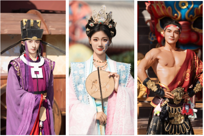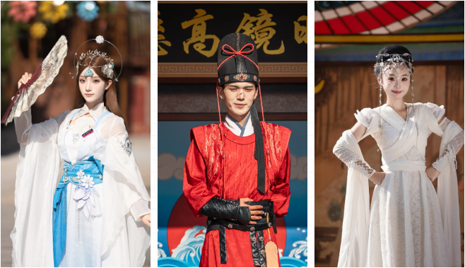首先,清明上河園是宋式園區(qū),和古裝超級適配!所以,可以著漢服入園,另外,園區(qū)設(shè)有三處免費換裝點,分別位于迎賓門廣場、宋裝館、尚服局,都可以免費換裝,團扇、折扇也可以備一把哦~