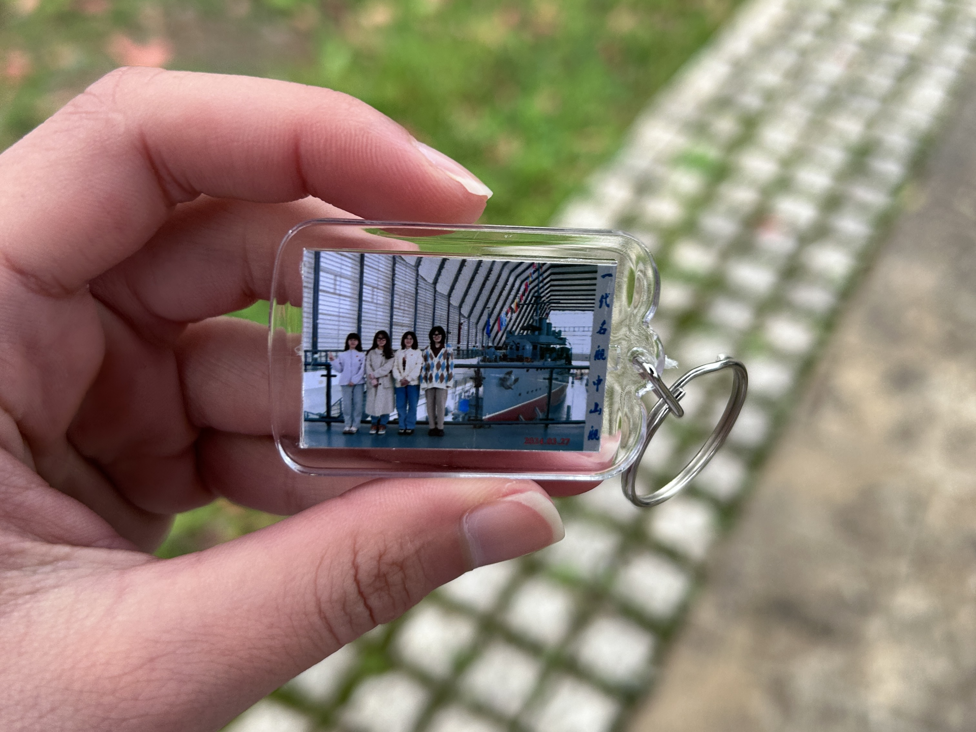 指尖在鍵盤(pán)上敲得發(fā)僵,揉著酸脹的太陽(yáng)穴時(shí),桌角亮起的手機(jī)吸引了目光——屏幕里,好友雙鳳發(fā)來(lái)一張照片,配文道:“小妍,你看去年在中山艦博物館拍的鑰匙扣!”。照片中的金屬鑰匙扣上,好友們與中山艦的合影清晰可見(jiàn),艦身殘留的彈痕格外醒目,背面 “振興中華” 四個(gè)字雖小,卻如一束光,瞬間將思緒拉回2024年那場(chǎng)特殊的主題黨日活動(dòng)。這小小的物件,早已超越普通紀(jì)念品范疇,成為百年艦魂的貼身載體,更藏著中山艦博物館打破時(shí)空、貼近大眾的文化傳承密碼。