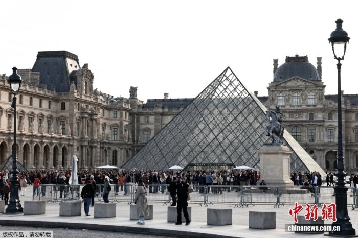 當(dāng)?shù)貢r(shí)間10月22日,在經(jīng)歷了搶劫事件三天后,法國(guó)盧浮宮重新開門,供游客參觀。圖為游客在盧浮宮外排隊(duì)。