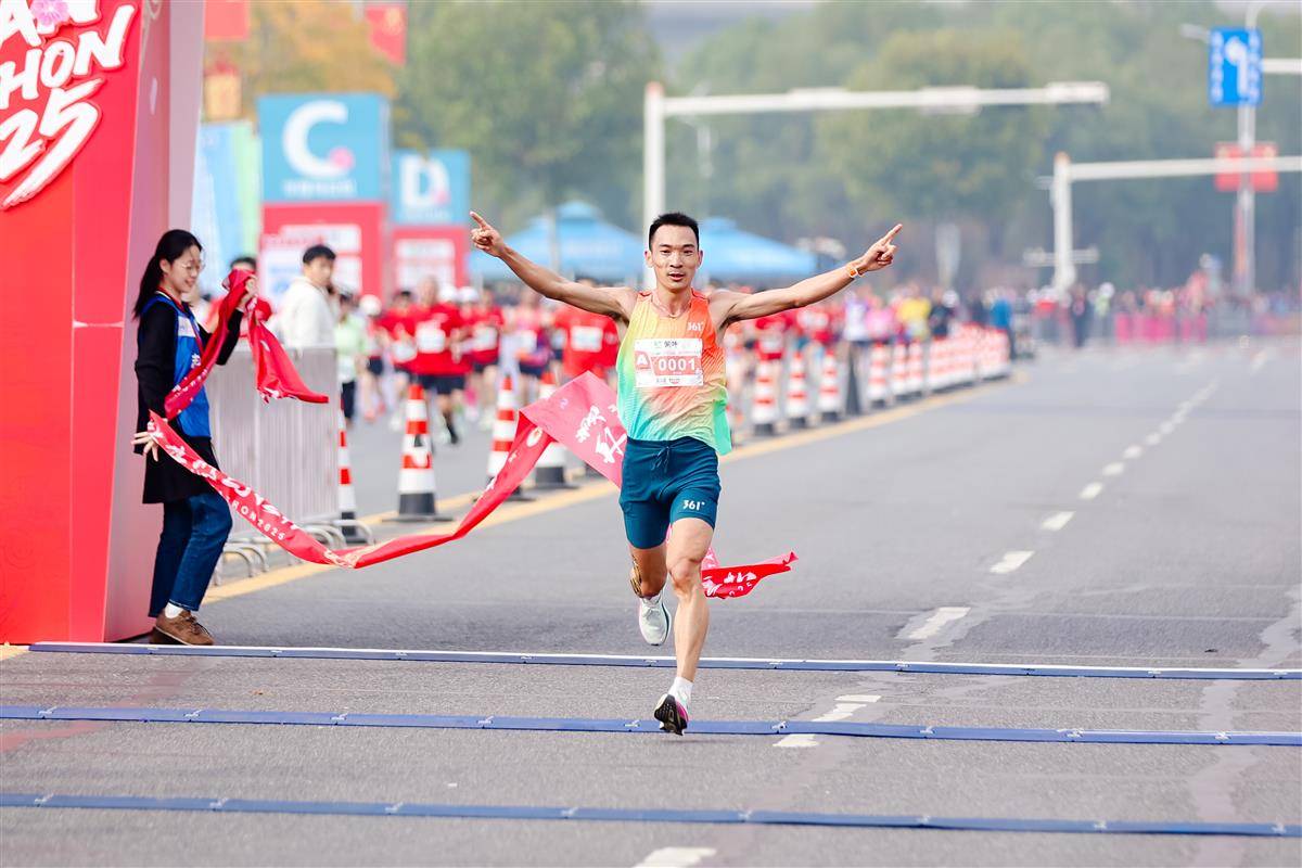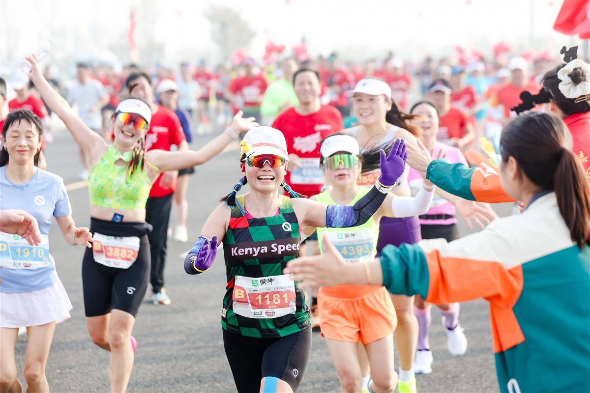 蒙牛2025孝感馬拉松選手沖過(guò)終點(diǎn)線(xiàn)。(孝感馬拉松組委會(huì)供圖)