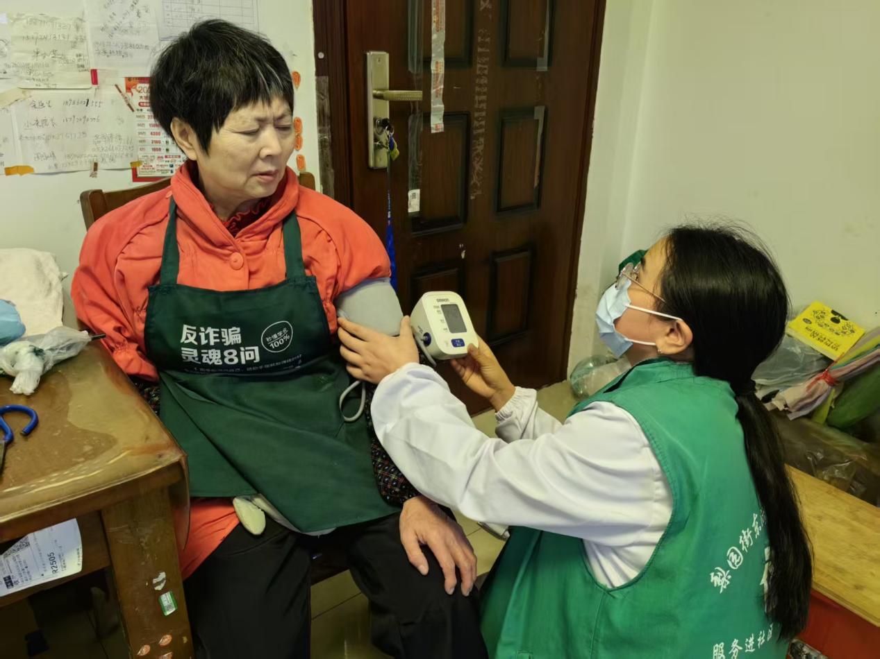 重陽節(jié)當(dāng)日下午,服務(wù)團(tuán)隊(duì)走進(jìn)東沙花園社區(qū)低保戶邱婆婆家中。邱婆婆因?yàn)樵缒暌馔廛嚨?,?dǎo)致時(shí)長(zhǎng)精神性疼痛直不起腰,街道特別組建"3+1"幫扶小組:家庭醫(yī)生每月上門體檢、民政專員對(duì)接輔具租賃、助老員傳授護(hù)理技巧。