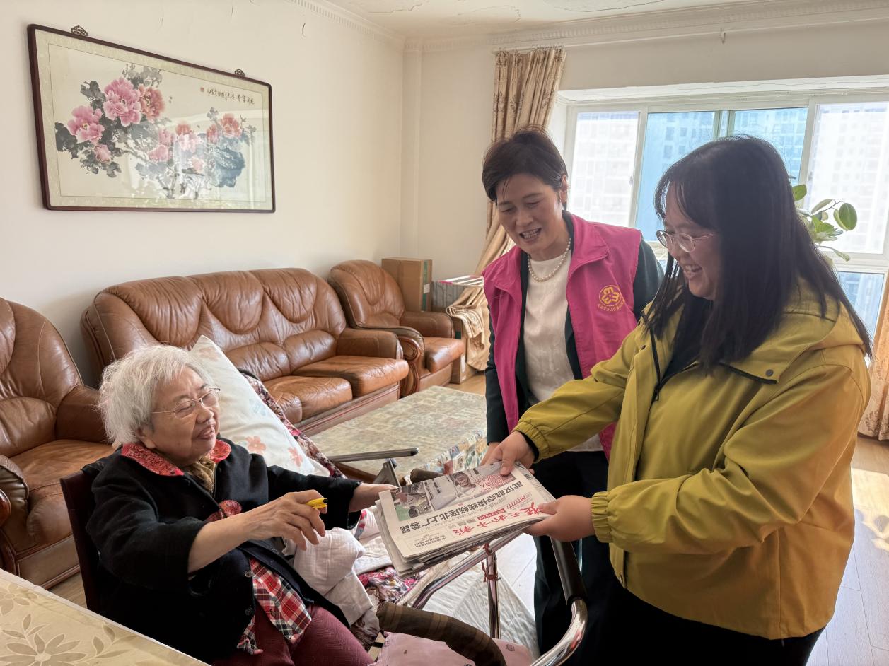 在東湖社區(qū)92歲獨(dú)居老人陳婆婆家中,陳婆婆由于前段時(shí)間不慎摔傷入院,才出院回家,助老團(tuán)隊(duì)便為其增裝了適老化扶手區(qū)域,在婆婆日常白天活動(dòng)區(qū)域最多的陽臺(tái)。陳婆婆撫摸著牢固的不銹鋼扶手感慨:"以前就裝了衛(wèi)生間,上廁所及洗澡是方便,如今在陽臺(tái)曬太陽也是很方便了。"更讓老人欣喜的是,東湖社區(qū)啟動(dòng)"書香伴夕陽"服務(wù),每日由黨員志愿者送報(bào)上門,并陪她讀報(bào)聊家常。"小劉姑娘每天帶來的不只是報(bào)紙,還有熱乎乎的暖心話。"窗邊陽光下,陳婆婆與助老工作者并肩而坐的畫面,成為秋日里最溫馨的剪影。