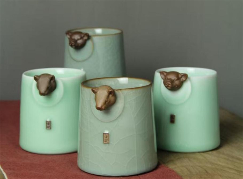 此次亮相的龍泉青瓷作品圍繞精致生活主題,展現(xiàn)了青瓷在日用瓷方面的創(chuàng)新。如浙江省工藝美術大師黃順民的《十二生肖水杯》巧妙融入生肖元素,杯身青釉溫潤,開片紋理古意盎然,杯口的生肖頭部雕刻生動細膩,實現(xiàn)傳統(tǒng)中國文化與龍泉青瓷工藝的完美融合;中國工藝美術大師、中國陶瓷藝術大師盧偉孫的《線性思緒手握杯》杯型直身微敞,杯身內(nèi)側與上唇露出白瓷胎,手工雕琢的線性紋理在涂抹青釉后,與光影交織出簡潔唯美的“哲思者”輪廓,1300℃還原焰燒制的青釉擅長表達青玉般潤澤的東方質(zhì)感,青白層次對比盡顯中國瓷器當代頂級美學。另一款《星空龜紋手握杯》則以遠古龜甲紋為符號,予以美好生活的祈福寓意,杯體配天然木紋底座,盡顯內(nèi)斂沉穩(wěn)的大家風范,將中華文化底蘊與當代設計審美巧妙融合。