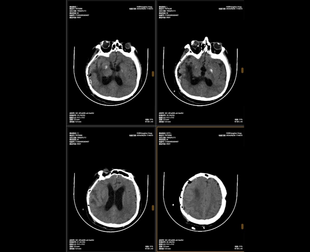 2024年5月,56歲的李先生(化名)不幸遭遇嚴(yán)重車禍,當(dāng)場(chǎng)昏迷,生命垂危。他被緊急送往湖北航天醫(yī)院后,檢查結(jié)果讓所有人心頭一緊:他的頭部受到嚴(yán)重撞擊,不僅有多處出血,腦組織也有挫傷,甚至連呼吸心跳的“總司令部”——腦干都受了傷。除此之外,還有顱骨、頸椎和多處肋骨骨折,情況萬(wàn)分危急。