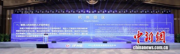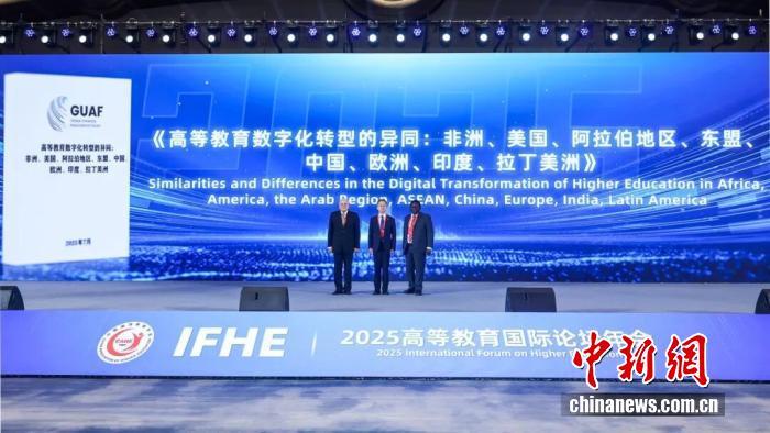 11月9日杭州2025高等教育國(guó)際論壇開幕式上,中國(guó)高等教育學(xué)會(huì)與歐洲大學(xué)協(xié)會(huì)、美國(guó)教育委員會(huì)等8大國(guó)際教育組織聯(lián)合撰寫的《高等教育數(shù)字化轉(zhuǎn)型的異同》研究報(bào)告進(jìn)行了展示。(主辦方供圖)